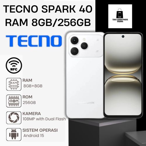 TECNO SPARK 40 - 6+6GB/128GB 6.67" LCD 120Hz SMOOTH DISPLAY HELIO G91 5200MAH + 45W GARANSI RESMI 1 TAHUN