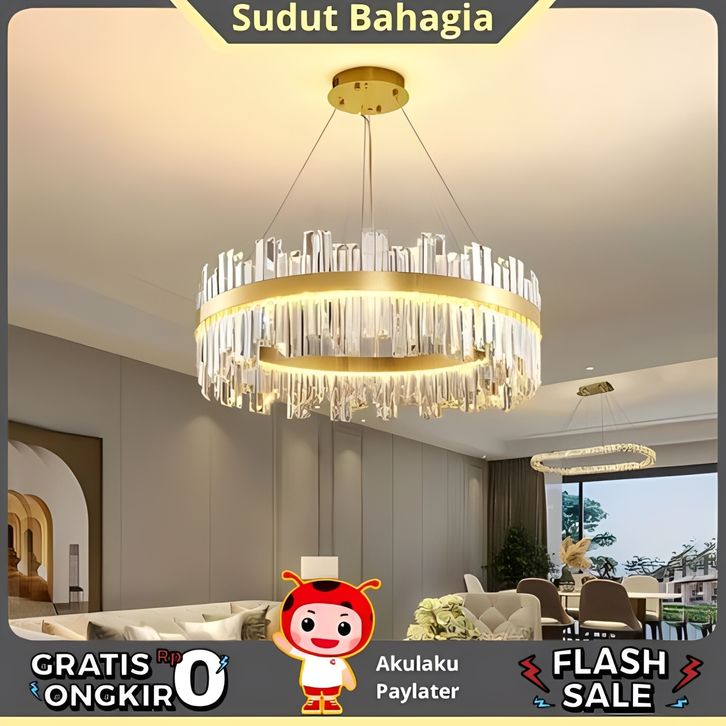 Lampu Gantung Nordic Minimalis Kristal Mewah Led Bulat Chandelier Dekorasi Ruang Tamu Hias Mini Bar Dan Outdoor