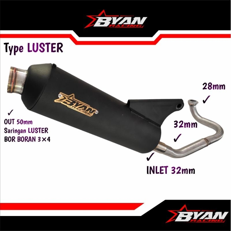 Knalpot BYAN Racing LUSTER Bor Boran 3×4 Beat Mio Vario Nmax Aerox PCX Bor Up Kirian INLET 32