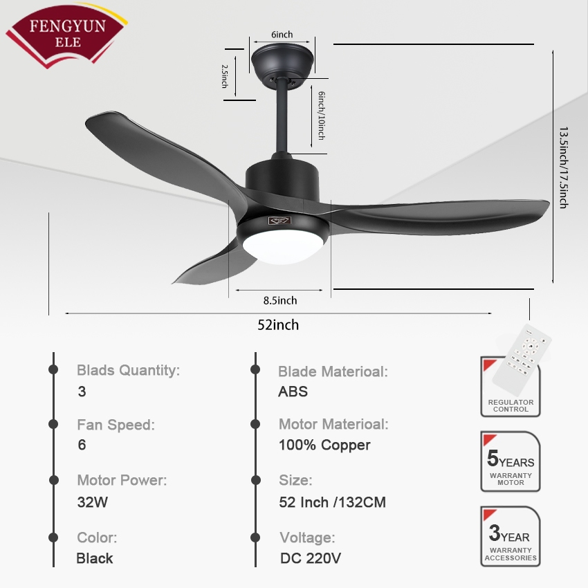 KIPAS ANGIN GANTUNG PLAFOM JUMBO MURAH BESAR LAMPU FENGYUN CEILING FAN WITH MODERN LED LIGHT,52INCH 6SPEEDS DC CEILING