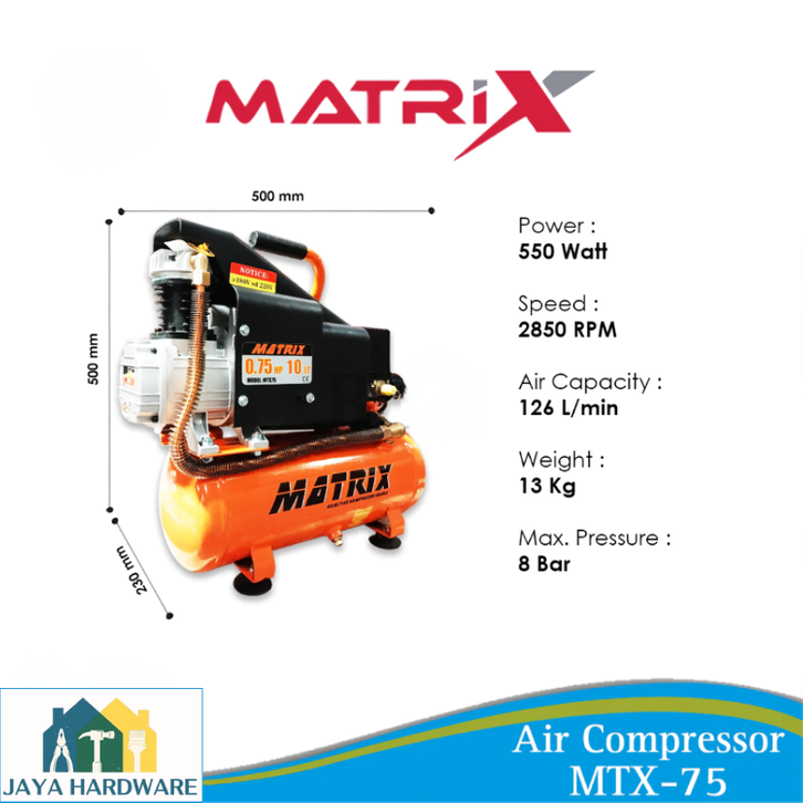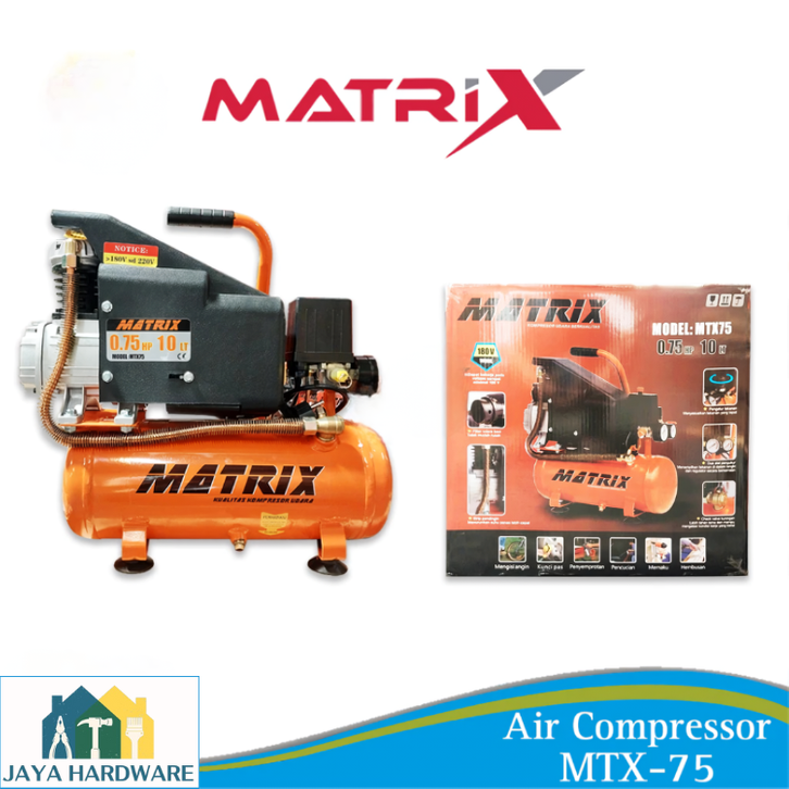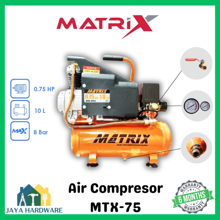 Kompresor Angin Listrik / Air Compressor Matrix MTX75 (0.75HP, 10 Liter) / Air Compressor Sumura SMR75 + Packing kayu