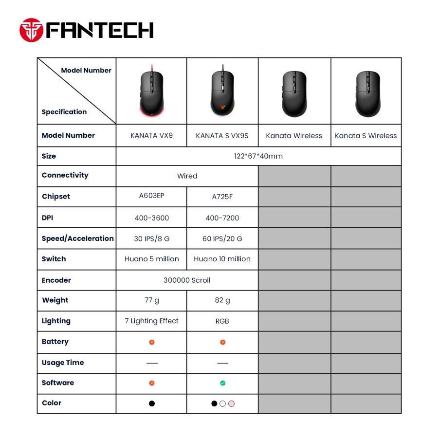 Fantech VX9 / VX9S Kanata RGB Gaming Mouse Garansi Resmi Ambidextrous