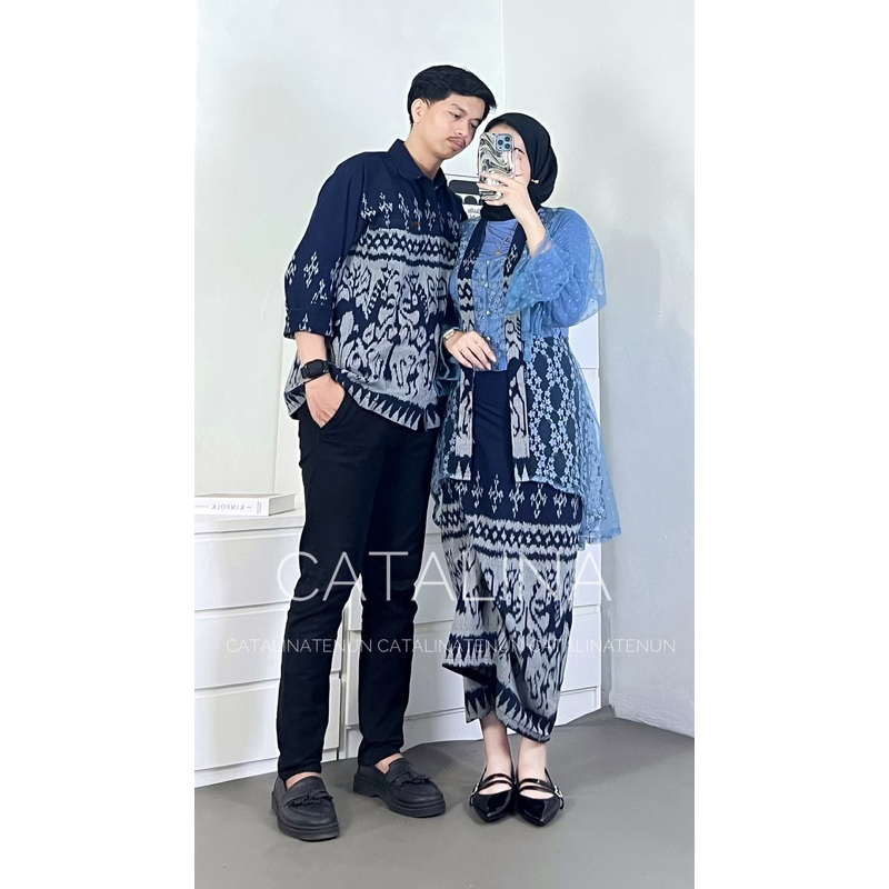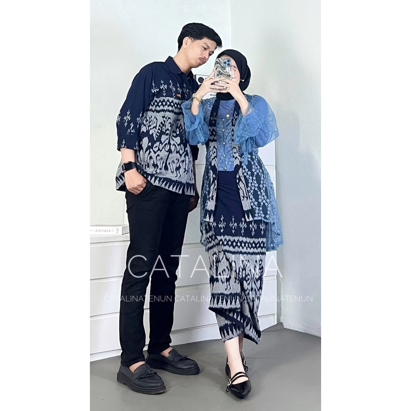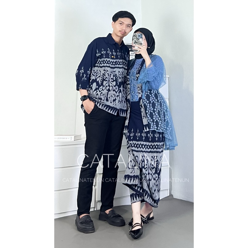BAJU TENUN COUPLE NEW SET KEBAYA WIDURI SUMBA NAVY BAJU KONDANGAN COUPLE ONE SET WANITA OUTFIT KONDANGAN