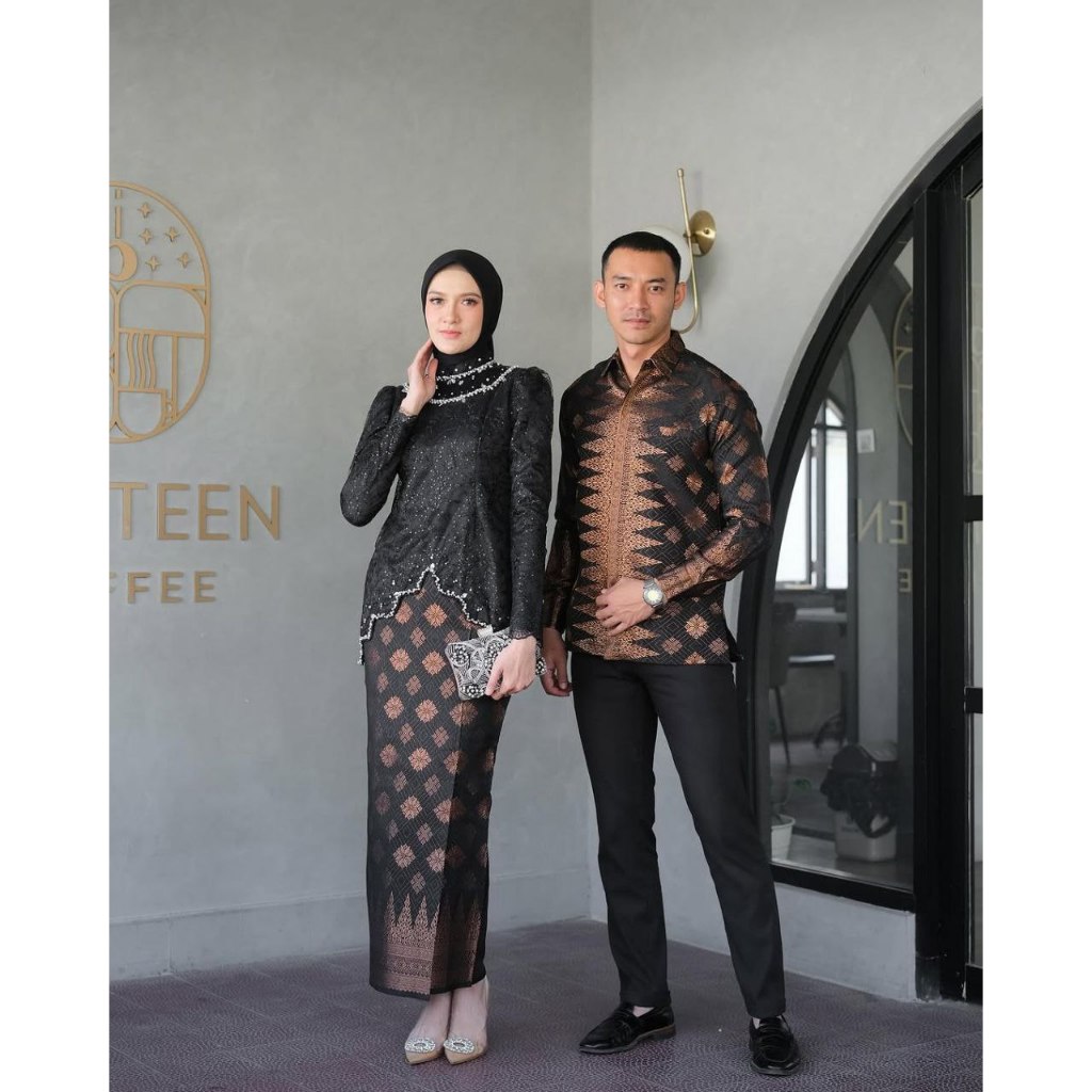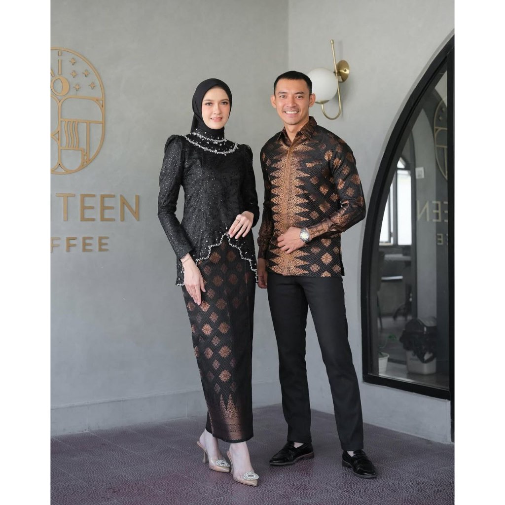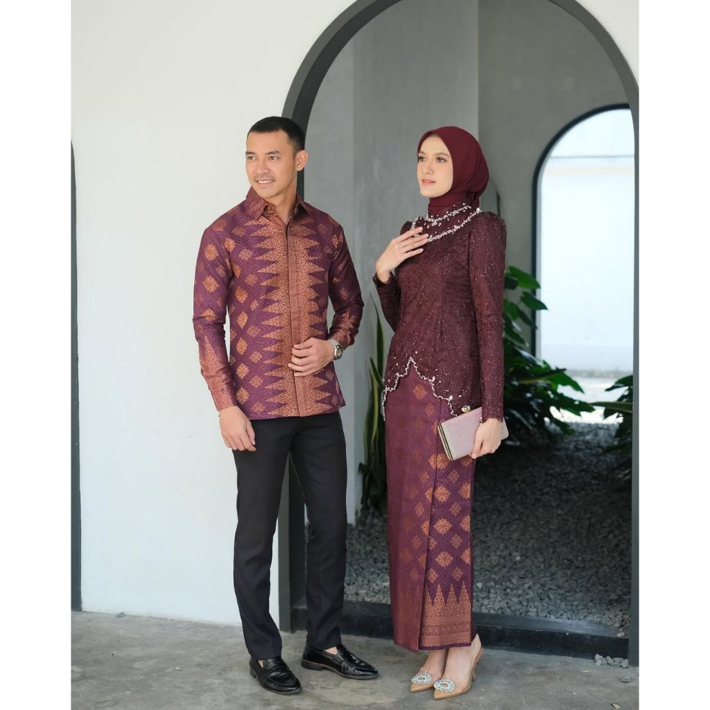 (FREE HIJAB) Set Couple Kebaya Songket Modern Sera Series Full Payet Wisuda Lamaran Terbaru 2024
