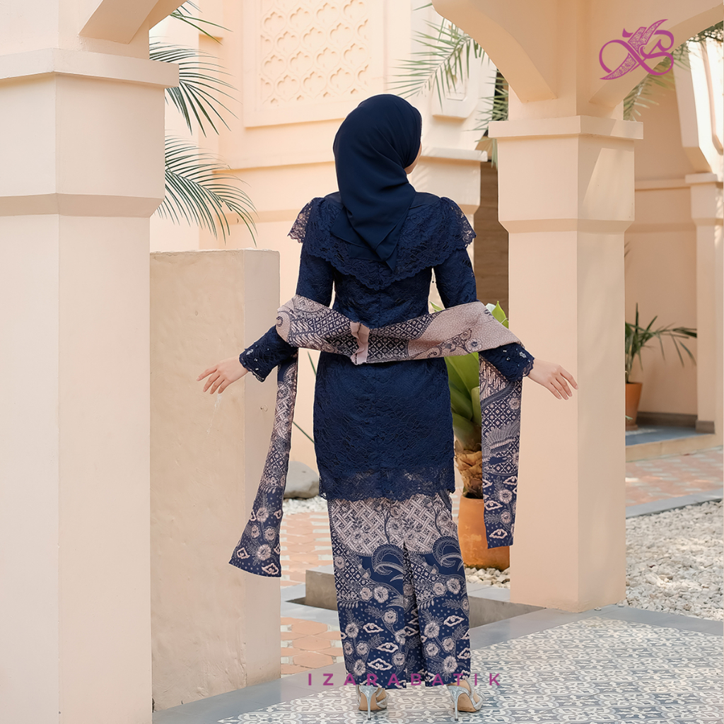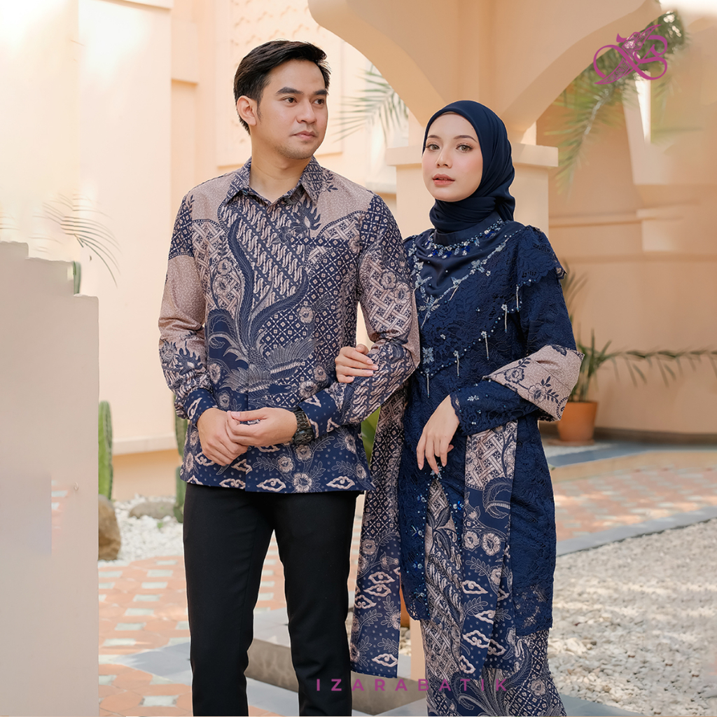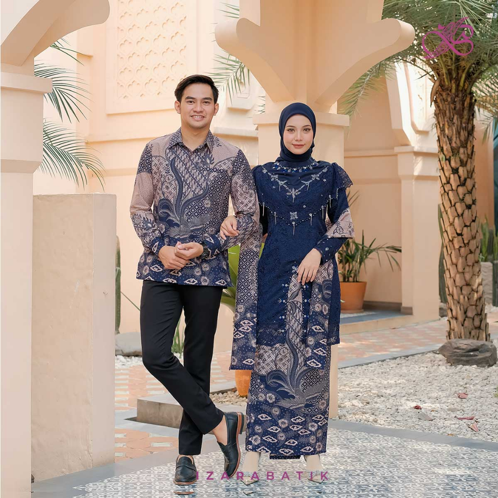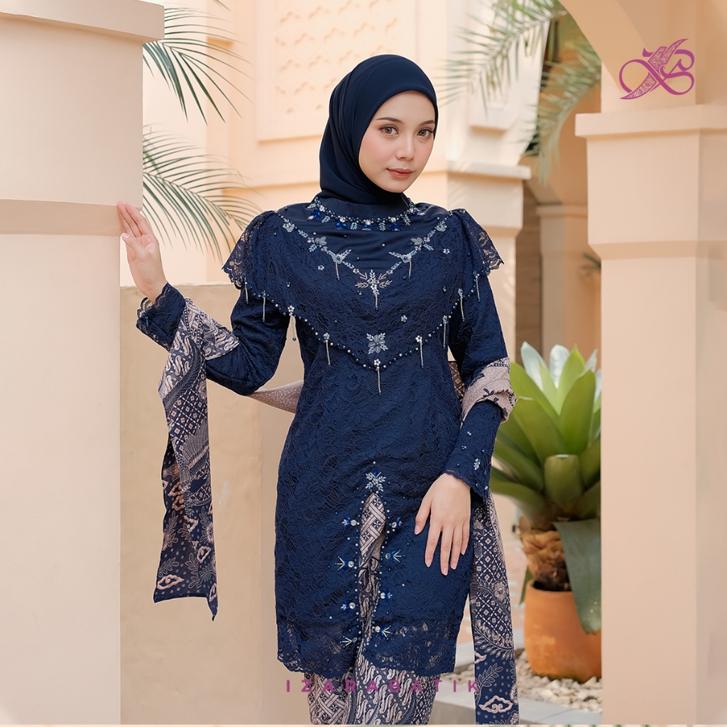 Kebaya Zivana Navy - Setelan Baju Batik Couple Kebaya Modern Tunic Wisuda Lamaran Kondangan [izarabatik]