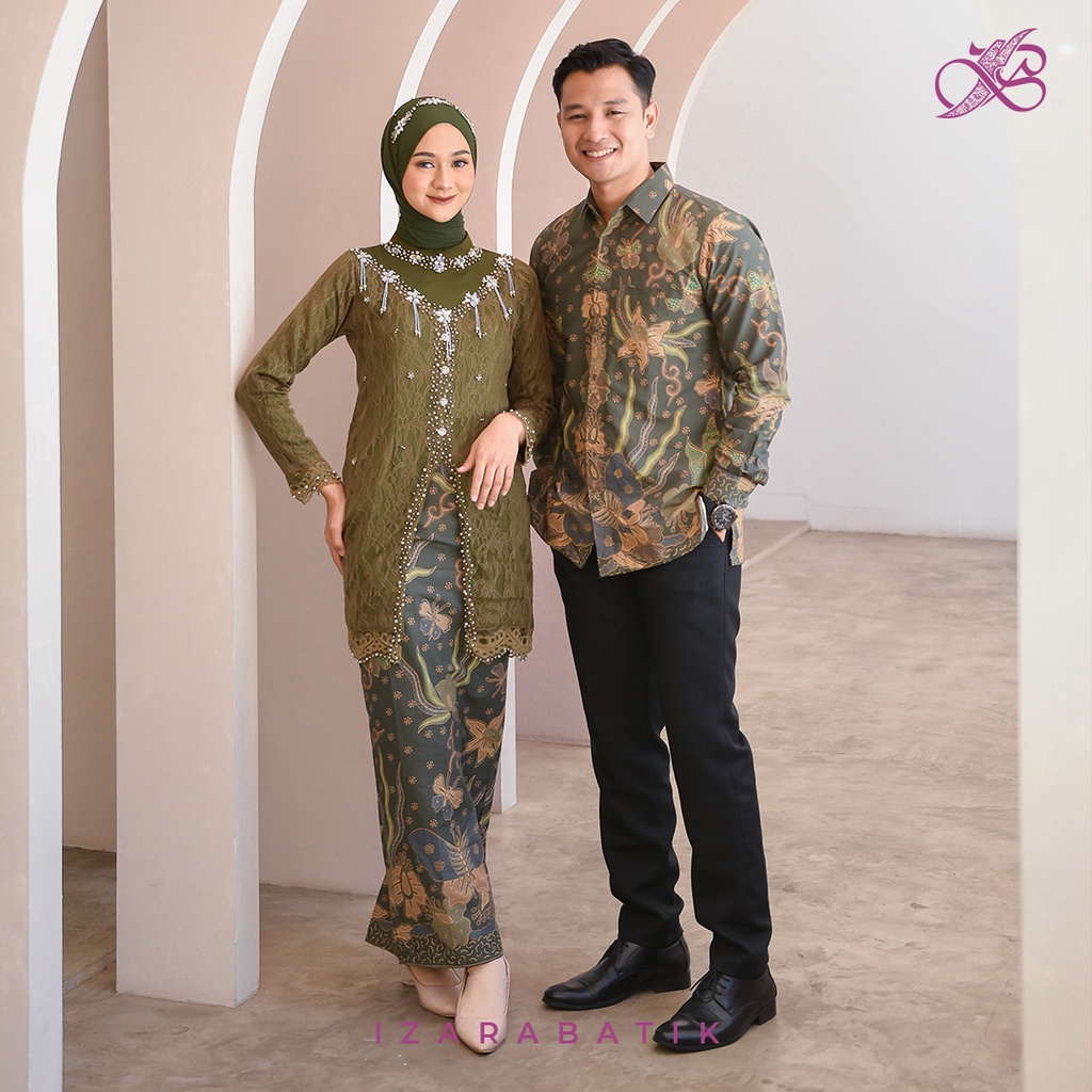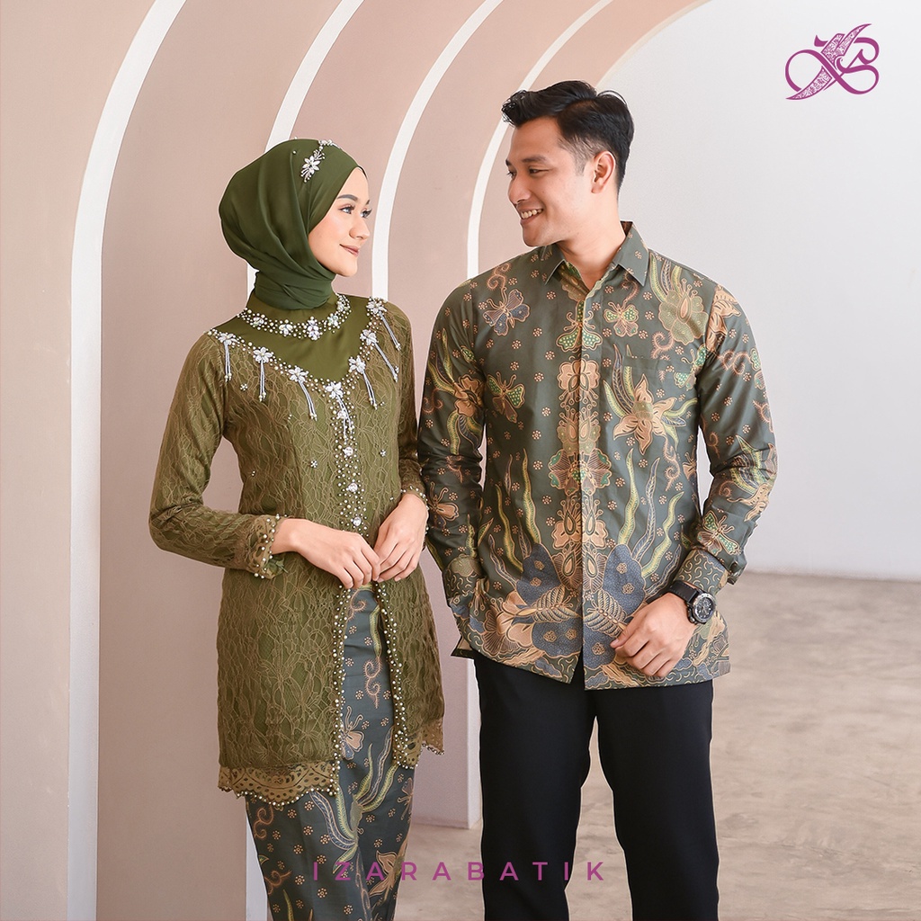 Anggita Hijau Army - Setelan Baju Kebaya Batik Modern Couple Wisuda Lamaran Kondangan [izarabatik]
