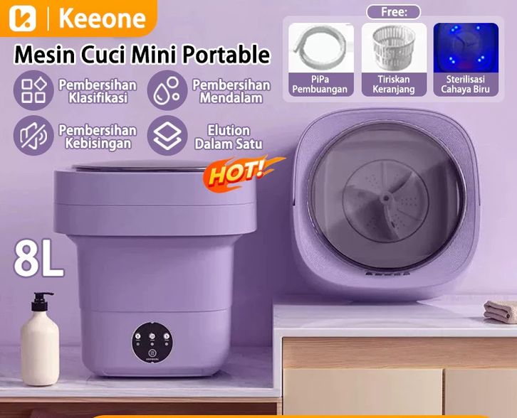 Mesin Cuci Mini Portable 2 Tabung 8L Mesin Cuci Lipat Otomatis Mesin Pengering Pakaian Sterilisasi Cahaya Biru