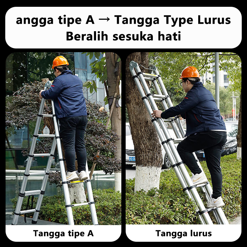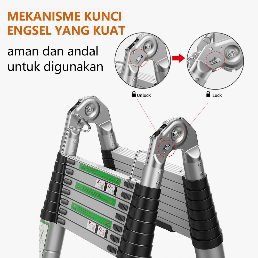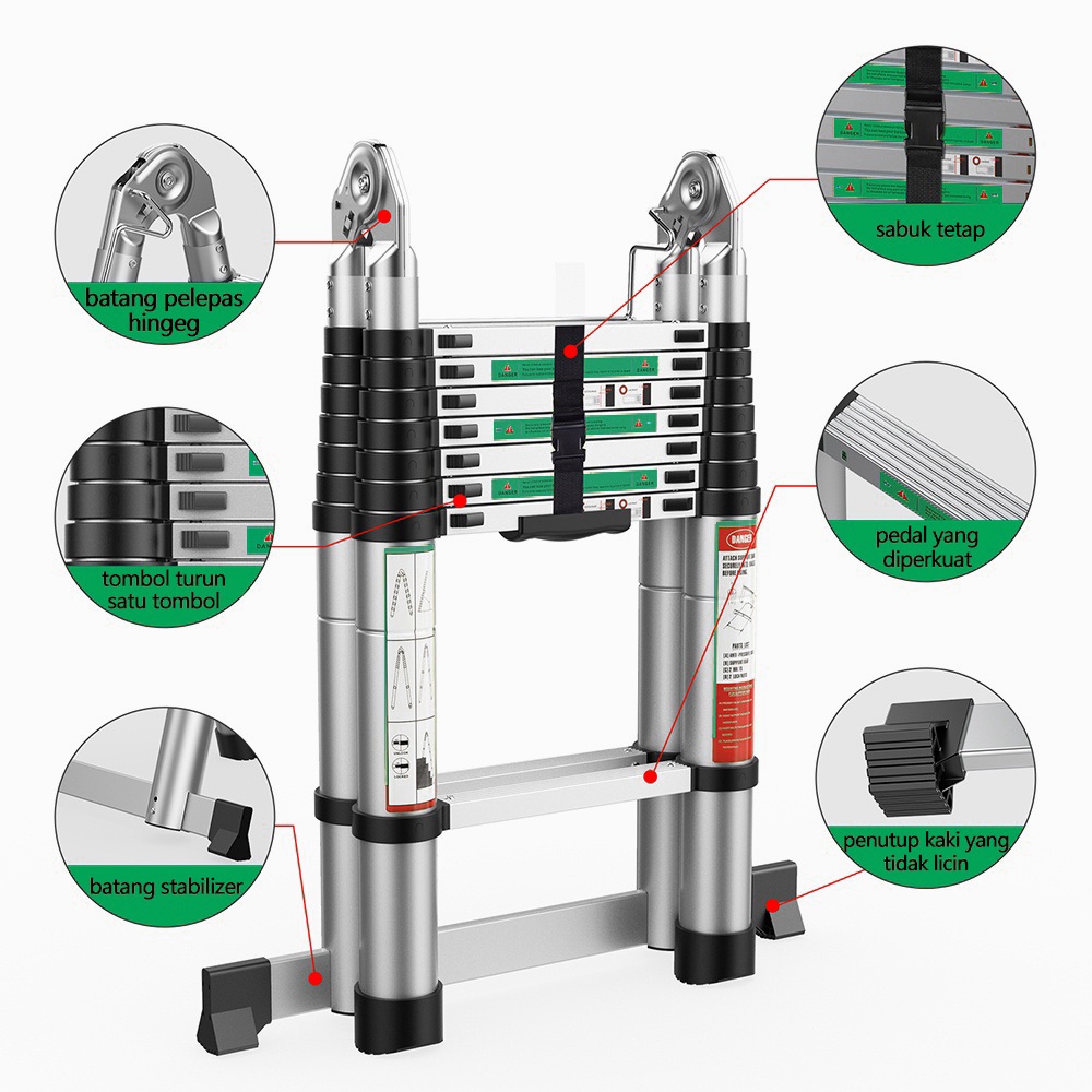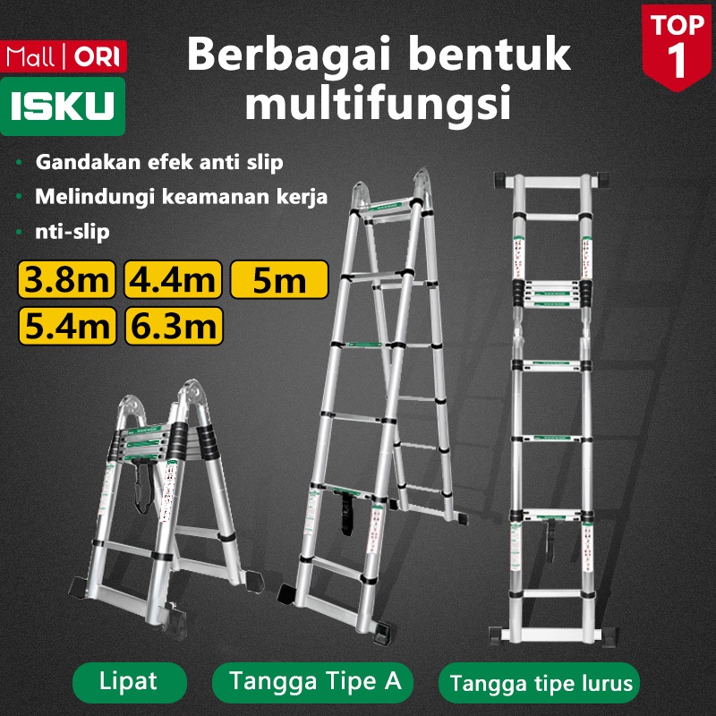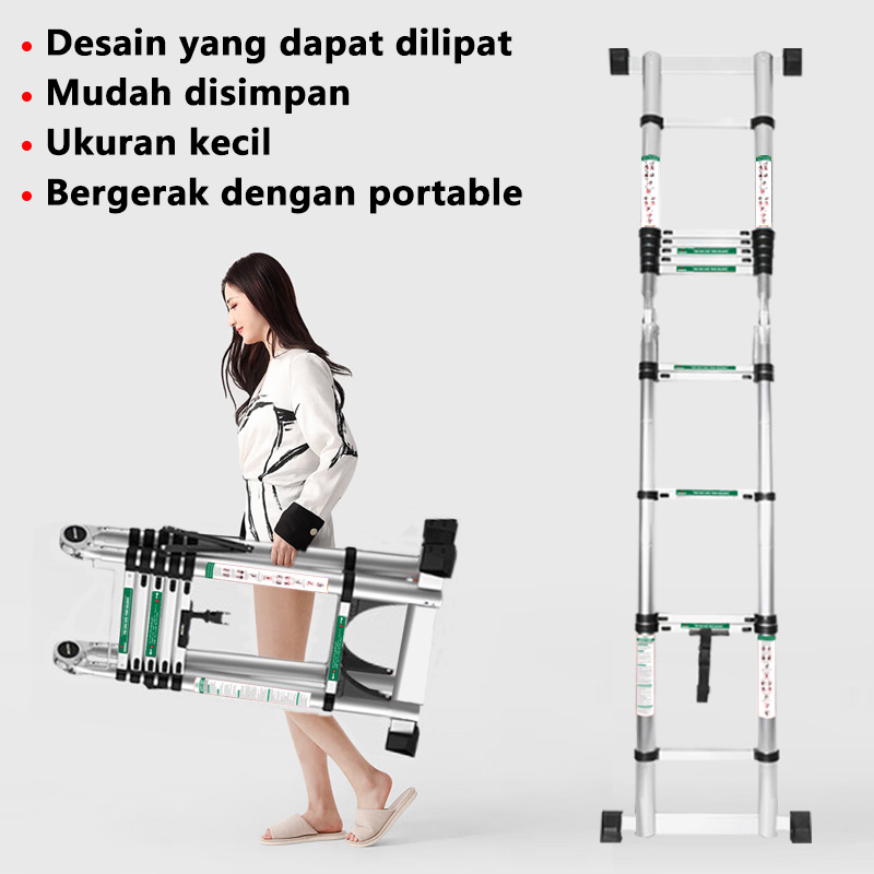 ISKU Tangga Teleskopik Aluminium Portabel Rumah Tangga Double Telescopic Ladder 3.8m/4.4m/5m/5.4m/6.3m Multifungsi