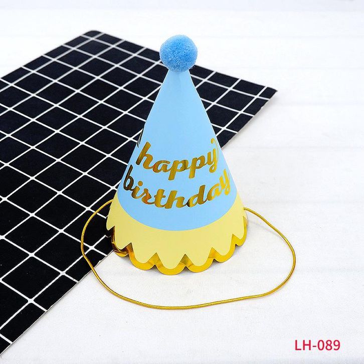 TOPI ULANG TAHUN KERUCUT POMPOM TOPI PESTA ULTAH TULISAN HAPPY BIRTHDAY