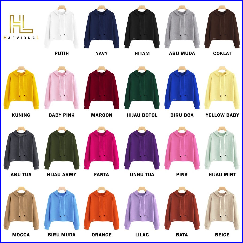 HITAM, PUTIH, NAVY, ABU MUDA, ABU TUA, HIJAU BOTOL, MAROON, MOCCA, BABY PINK, KUNING, HIJAU ARMY, COKELAT, LILAC, BIRU MUDA, BIRU BCA, REQ WARNALAIN