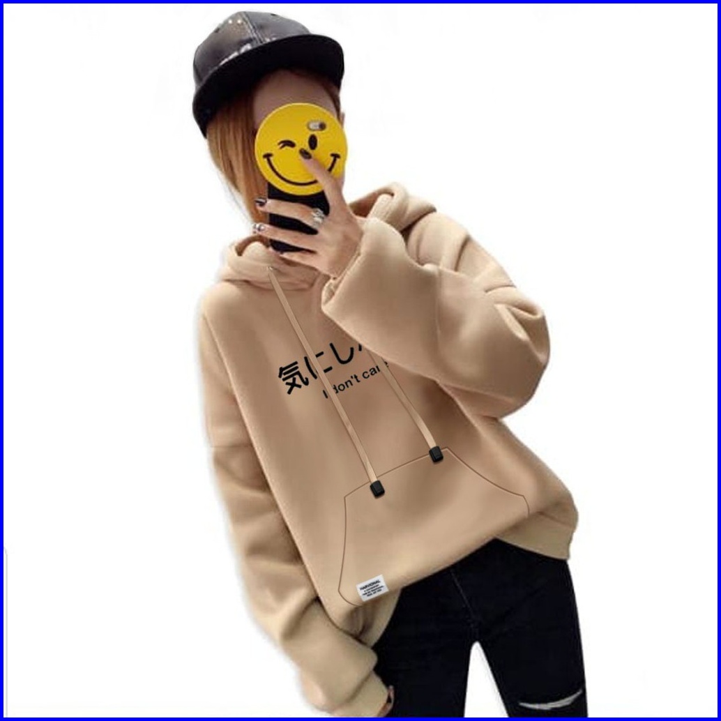 Harvional Hoodie Jumper I Dont Care Sweater Tebal Bahan Fleece