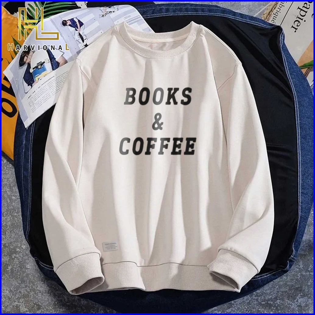Harvional Sweater Crewneck Book Coffe Size S - Xxl Pria Wanita