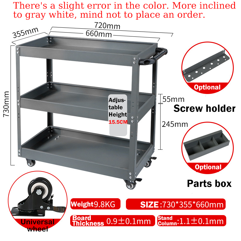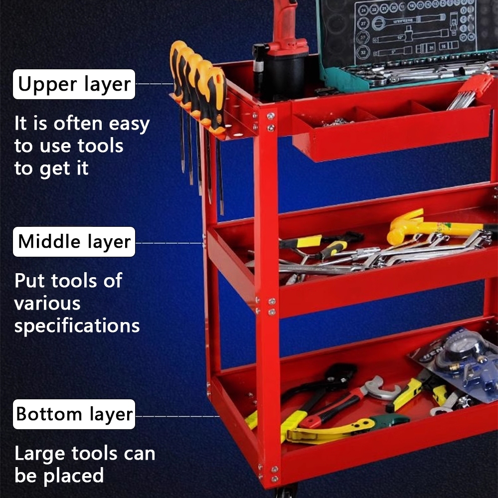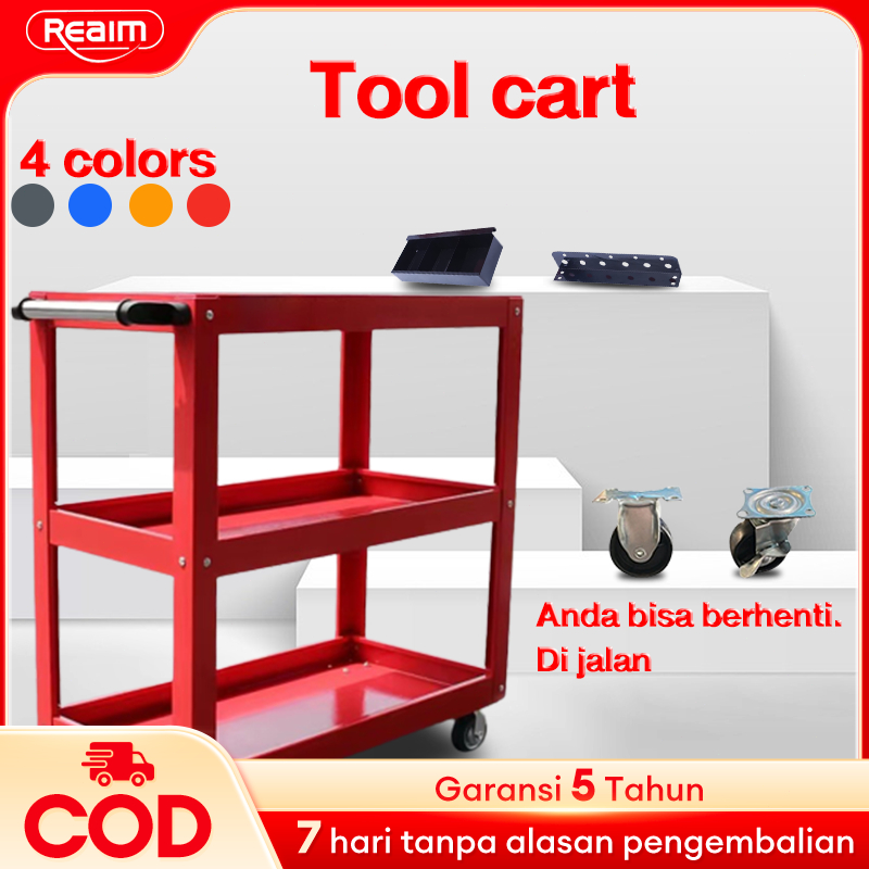 Reaim Troli Bengkel Rak 3 Susun Trolly Trolley bantalan 150kg Kotak Peralatan Rak Alat Perkakas Trolly Galon Troli Denga