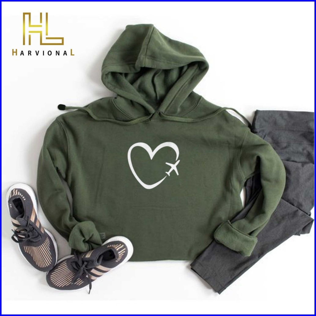 Harvional Crop Sweater Polos Hoodie Love Terbang Size S - L