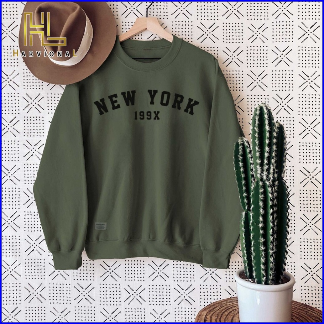 Harvional Basic Sweater Trendy New York 199x Lengan Panjang Pria Dan Wanita