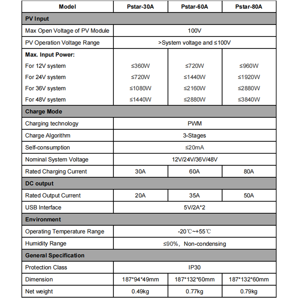 PowMr PWM 30A Solar Charge Controller 12V/24V/36V/48V Automatic Identification With LCD backlight display