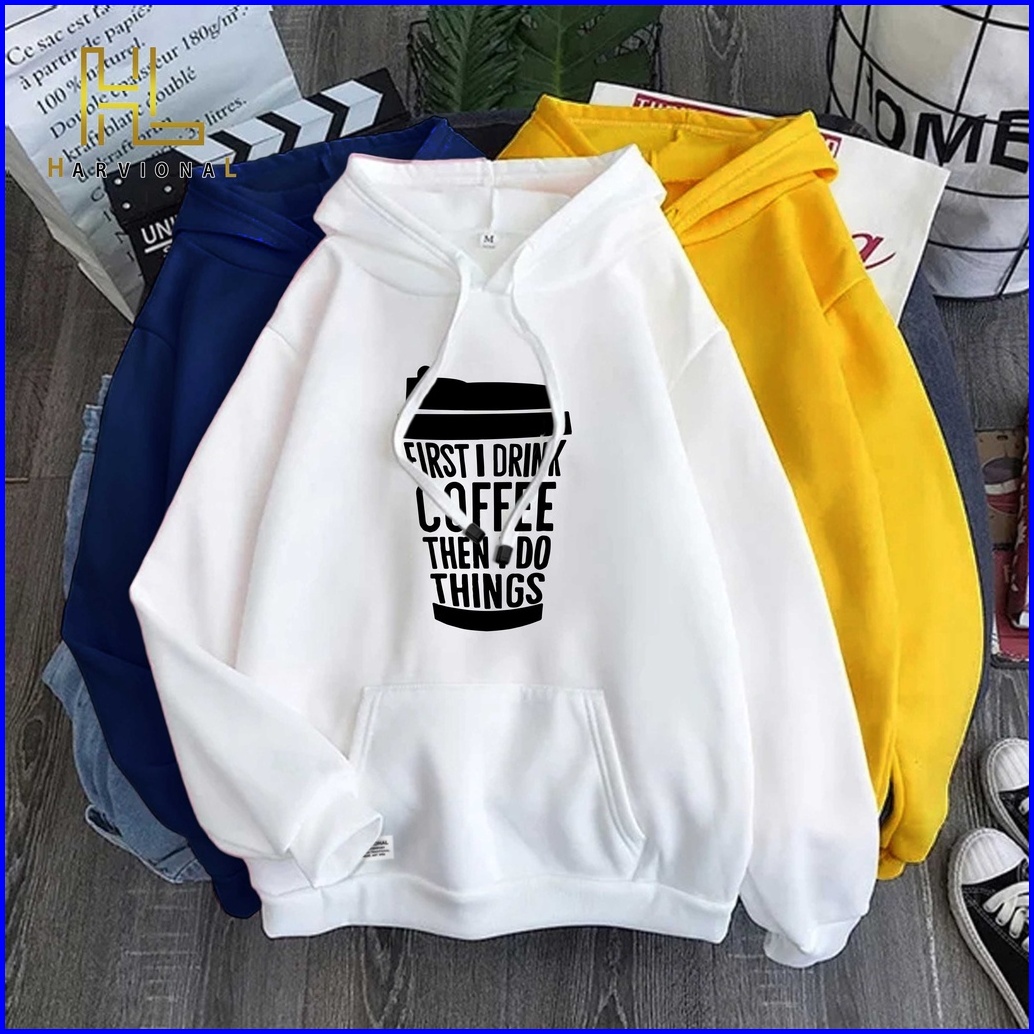 Harvional Hoodie Jemper First Drink Coffee Size S - Xxl Pria Wanita