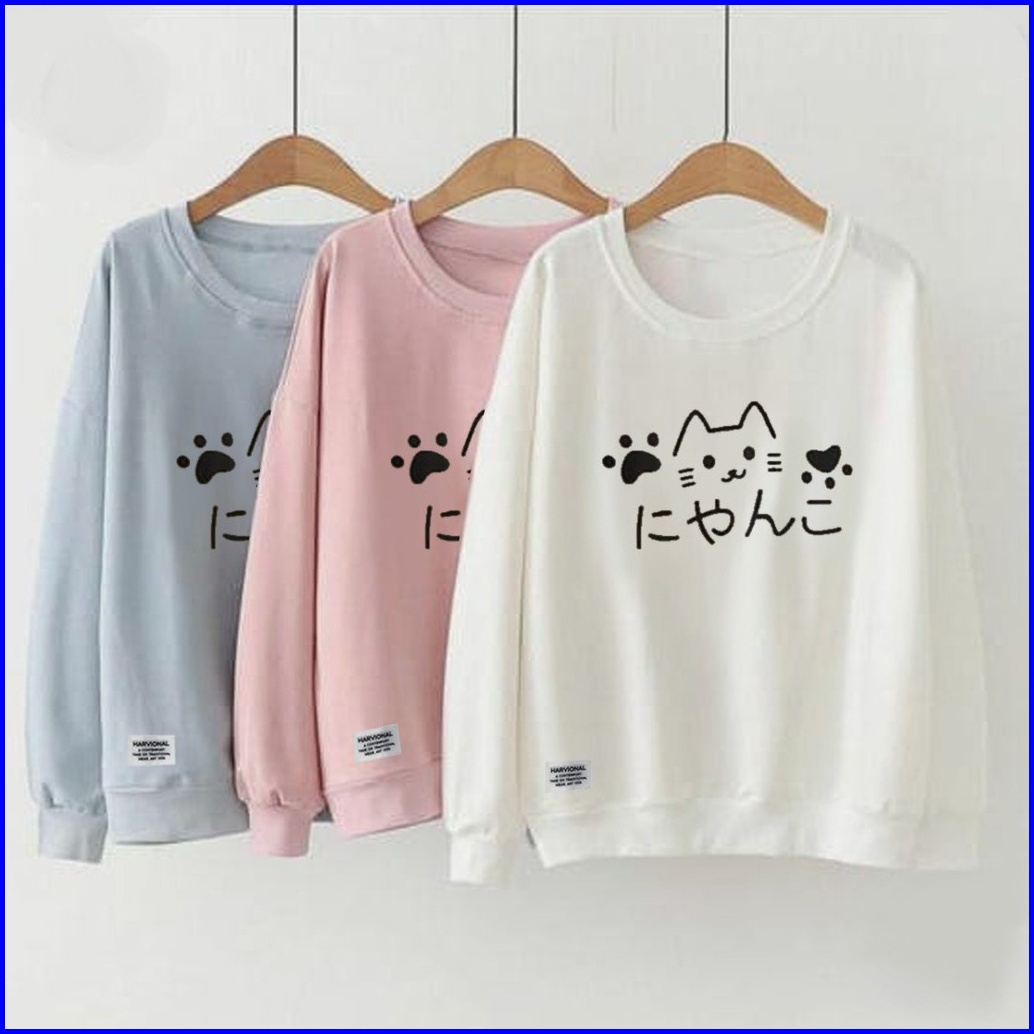 Harvional Sweater Crewneck Kucing Lucu Size S - Xxl Pria Wanita