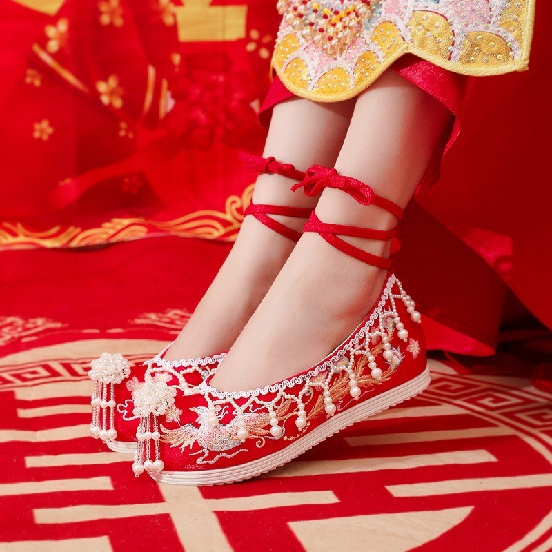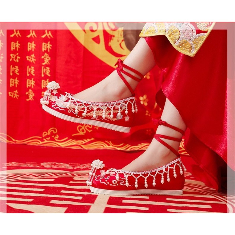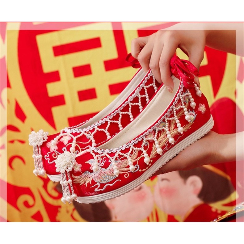 [Ready Stock] Sepatu Pengantin Tradisional China dengan Bordir dan Hak Tinggi untuk Wanita Sepatu Gaun Kuno Hanfu HF39