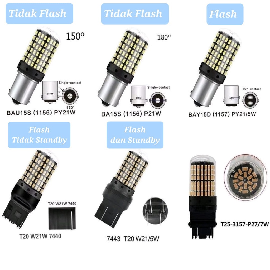 Lampu LED 144 Titik Mata SMD 1157 1156 T20 Kedip Flash Mundur Rem Sein Sen Mobil Motor Putar Bayonet