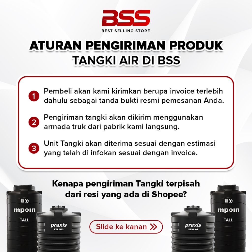 Tangki Tandon Toren Air TERMURAH SE INDONESIA Praxis Kerang 1100-550-350L Anti Lumut Bahan Kuat Lentur Gratis Ongkir