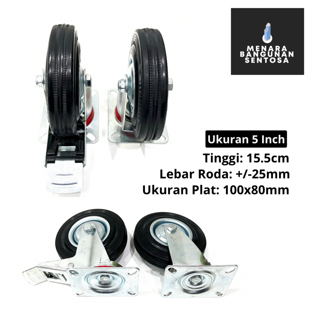 Roda Karet Hitam Hidup 5 Inch - Roda Troli Trolley Etalase Gerobak