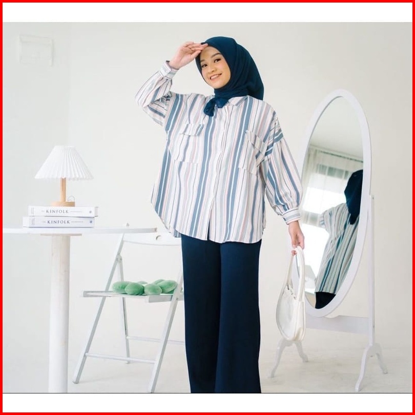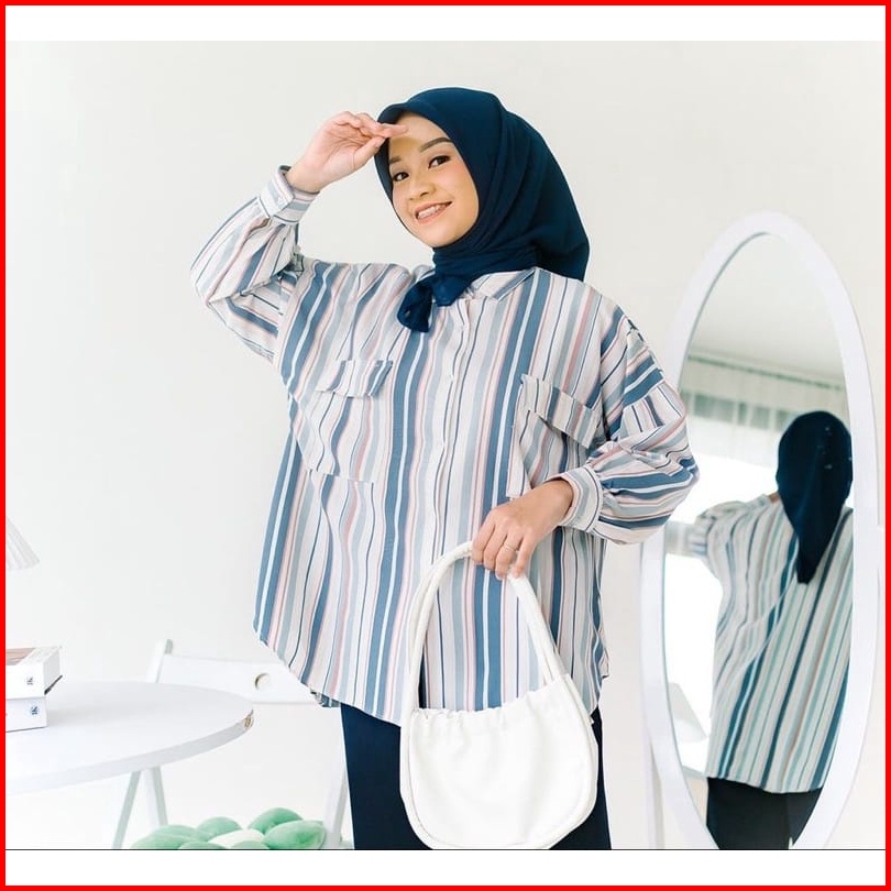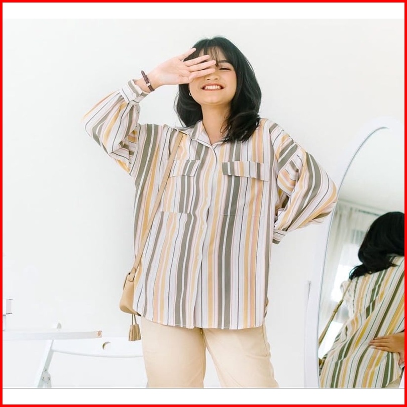 Afi - Ec - Carissa Oversize Stripe Shirt Kemeja Blouse