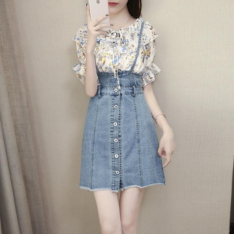 ( Promo )Susana ID Overall White Jeans Skirt D118