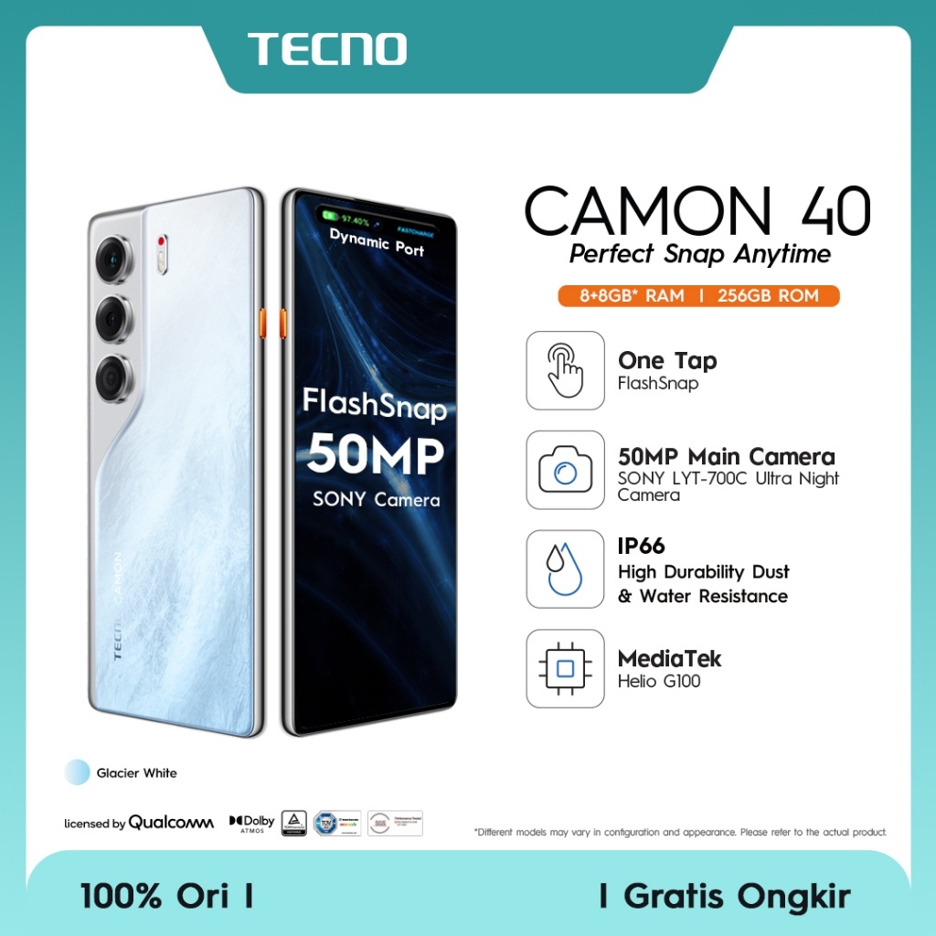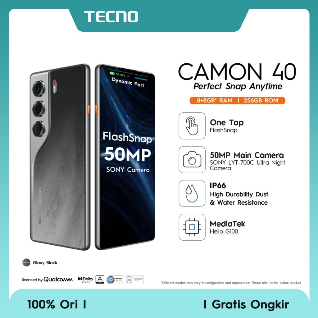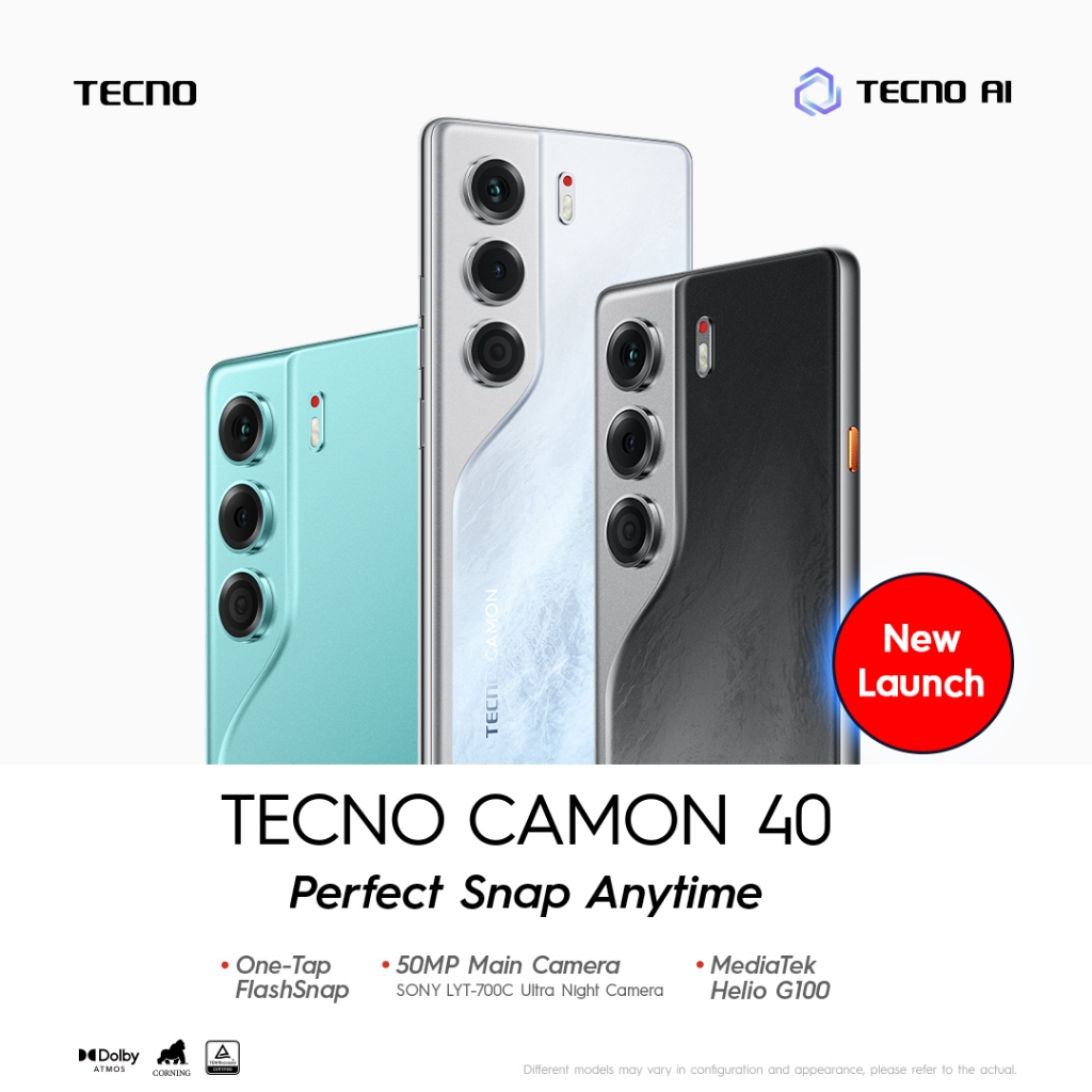 tecno camon 40 8+8GB 256 GB, 50MP Sony + 8MP Ultra Wide Camera, 32MP Front Camera, 120hz AM