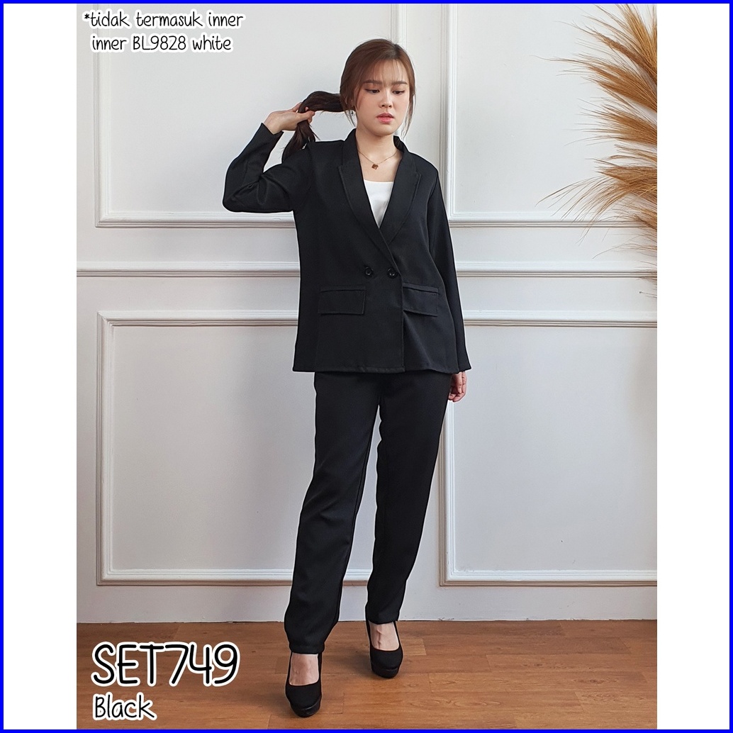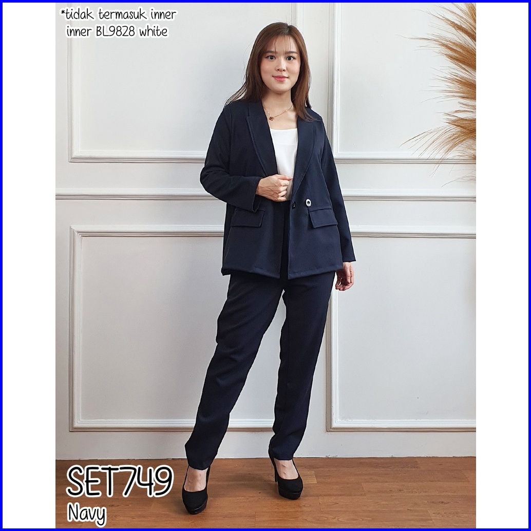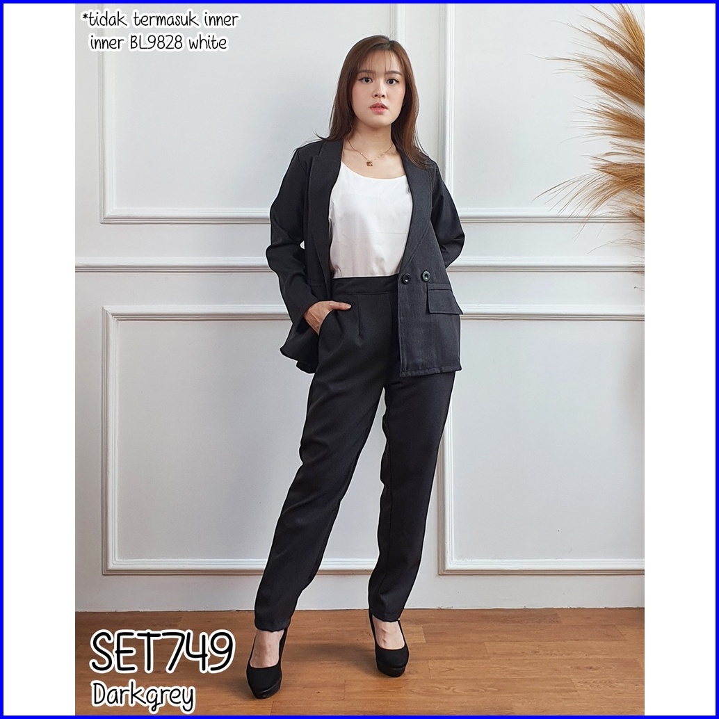Missol One Set Wanita Blazer Lengan Panjang Celana Panjang Office Suit Polos Set749