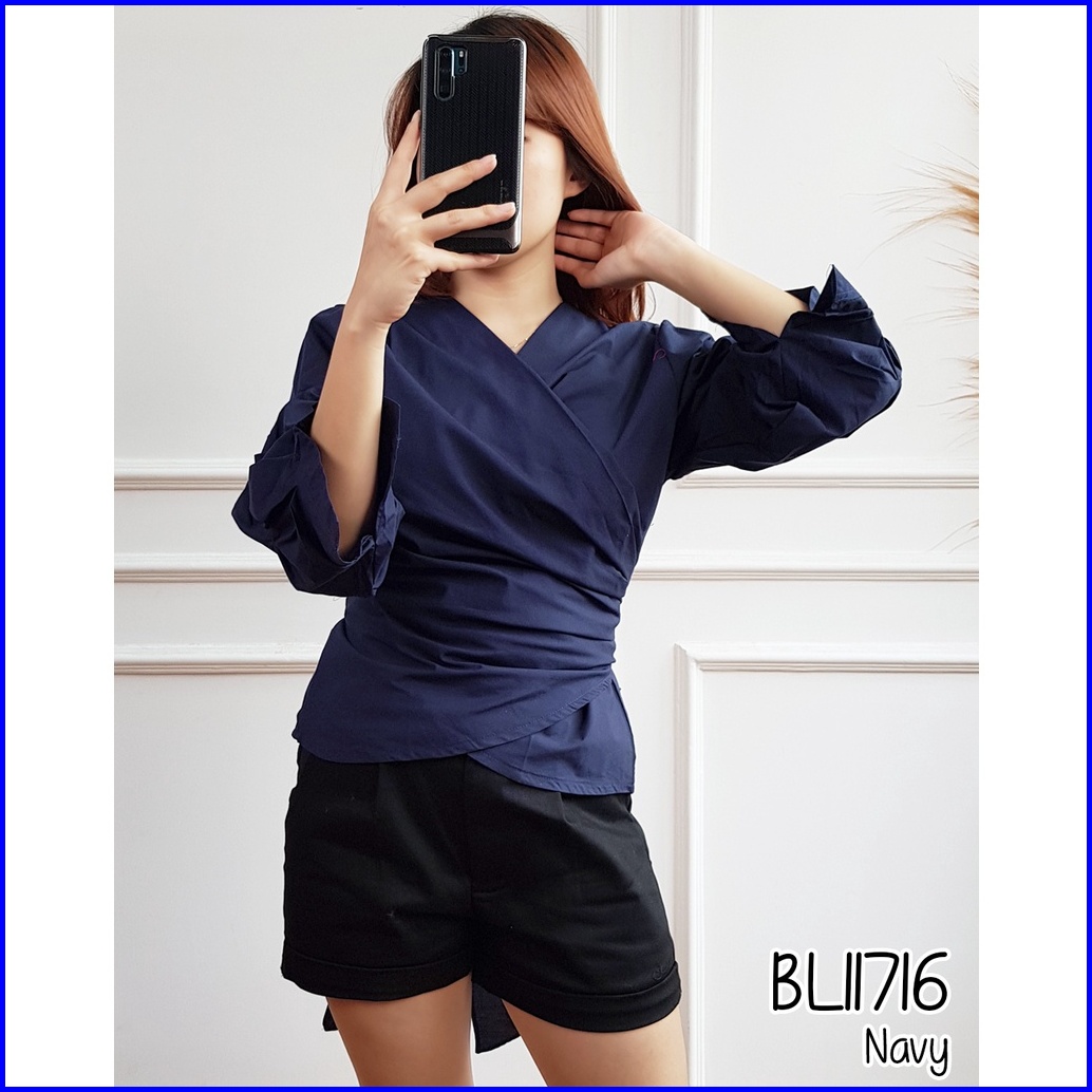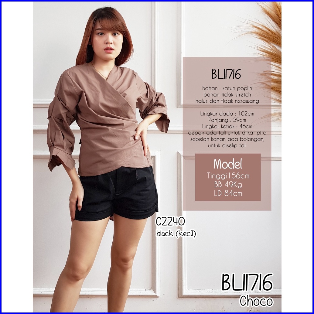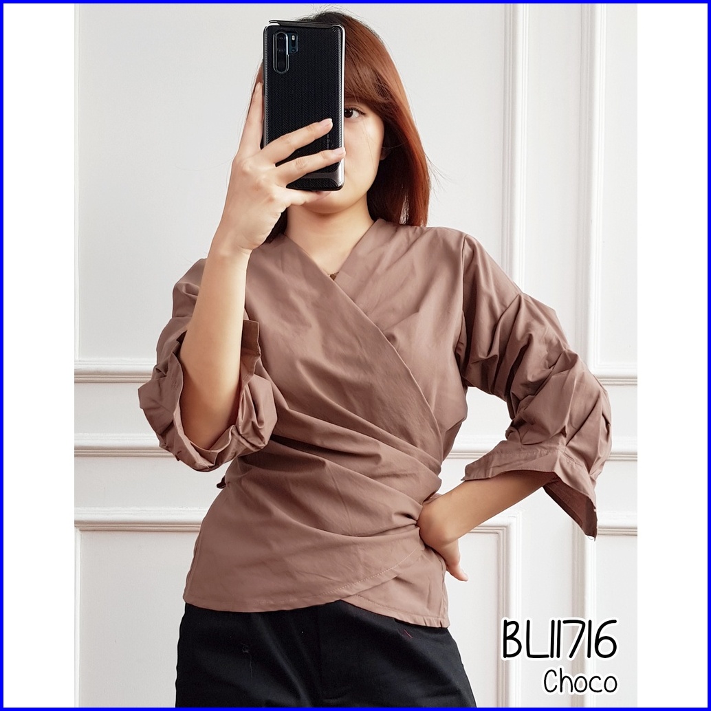 Bl11716 Blouse Wanita Tangan 7 8 Model Kimono Polis Tangan Balon 11716