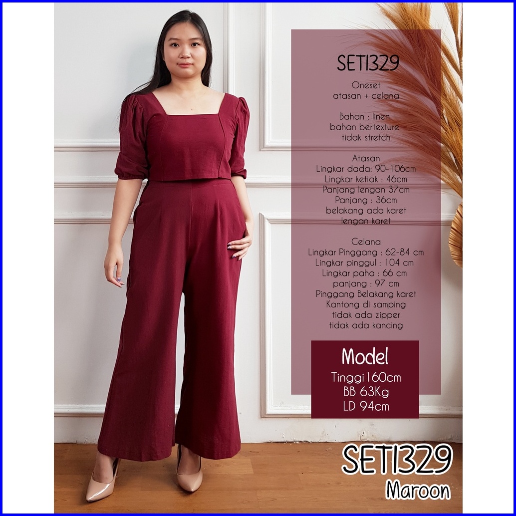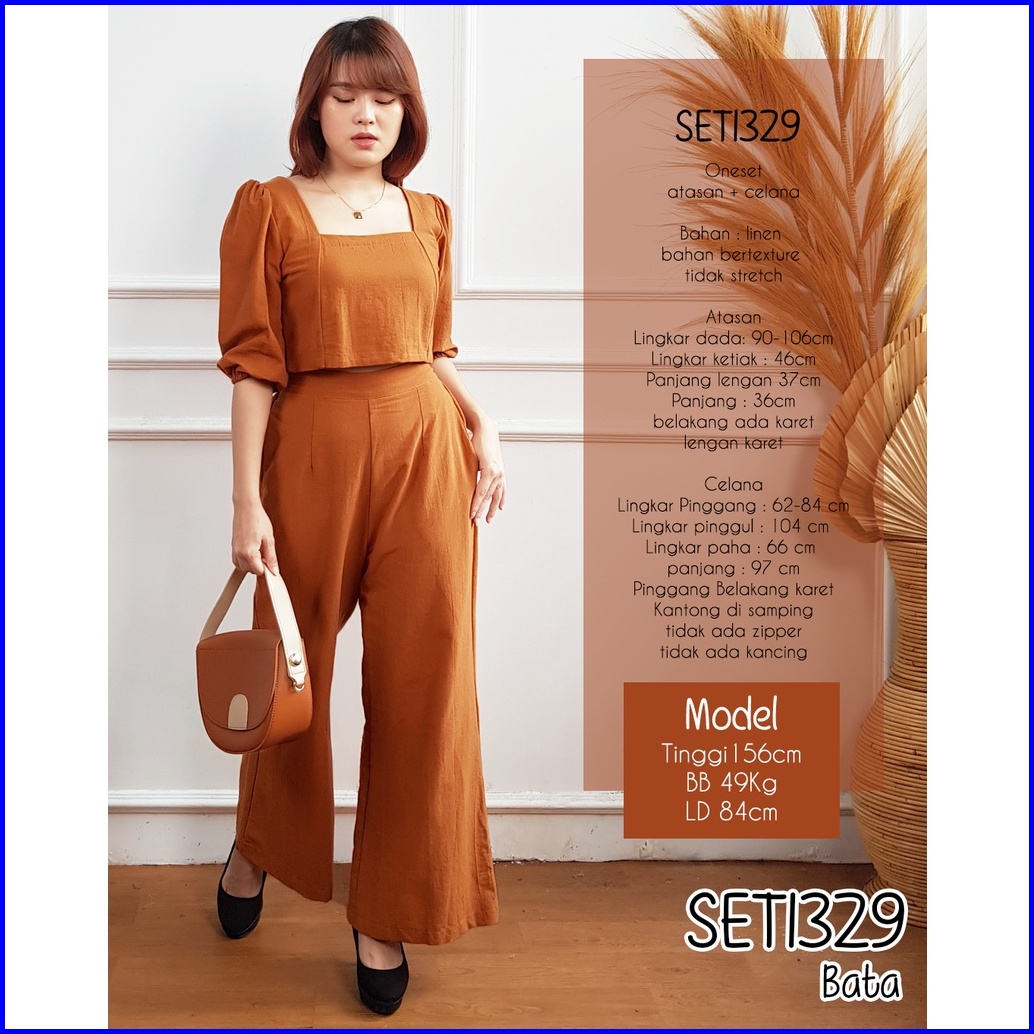 Missol One Set Linen Korean Polos Atasan Dan Celana Panjang Set1329