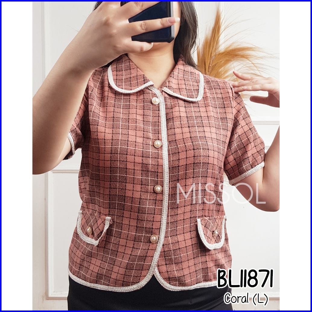 Missol Atasan Wanita Kekinian Tweed Korea Lengan Pendek Bl11871 11871