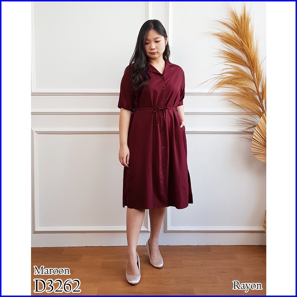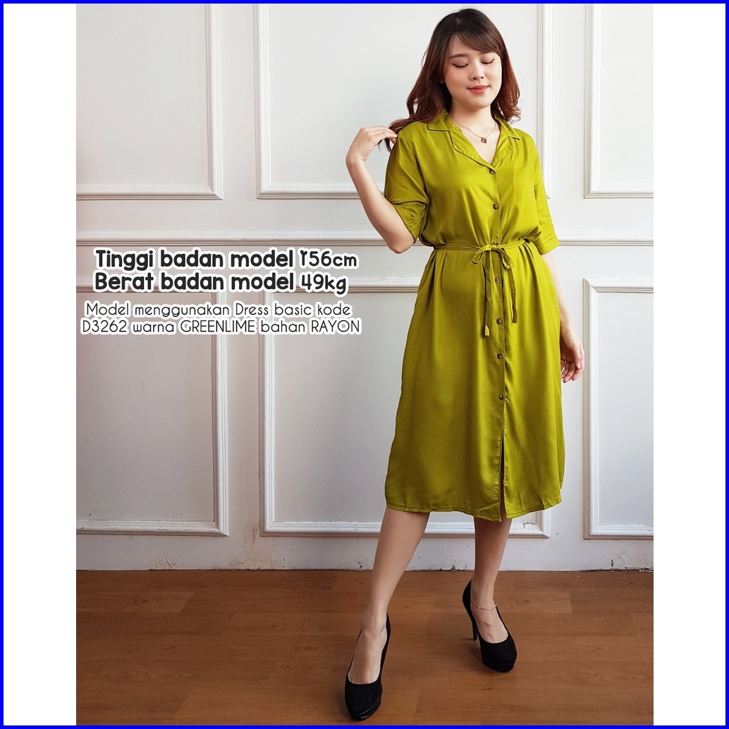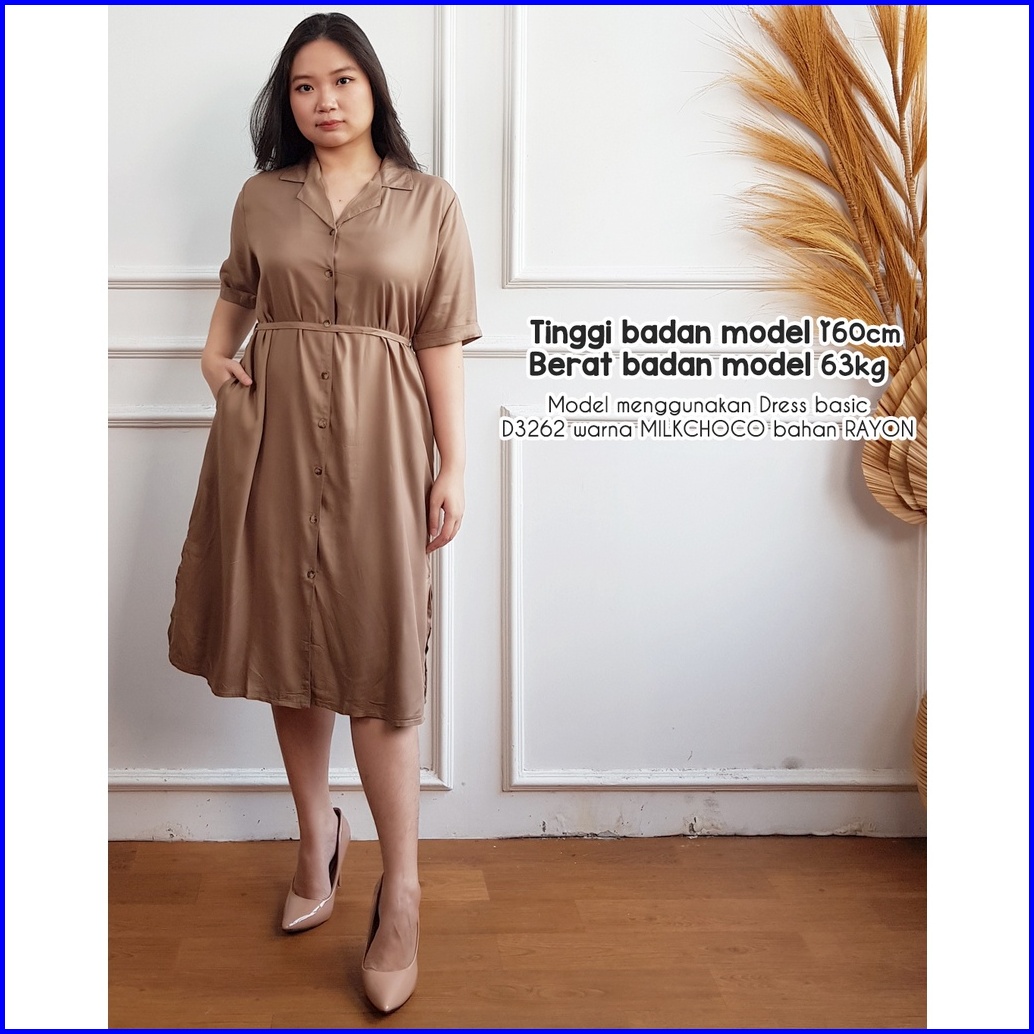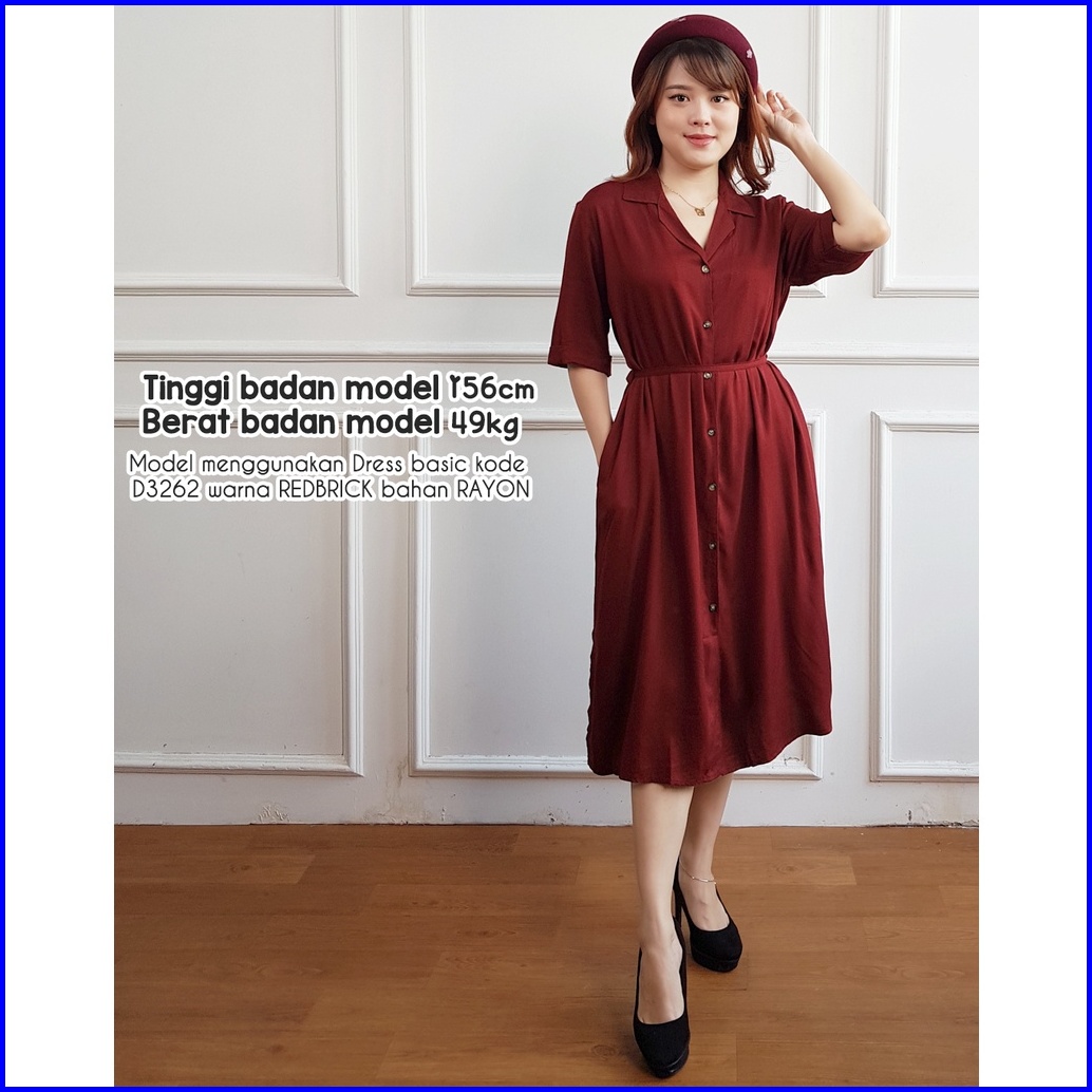 Missol Dress Midi Polos Lengan Pendek Kerah Bisa Untuk Busui Adem D3262 3262