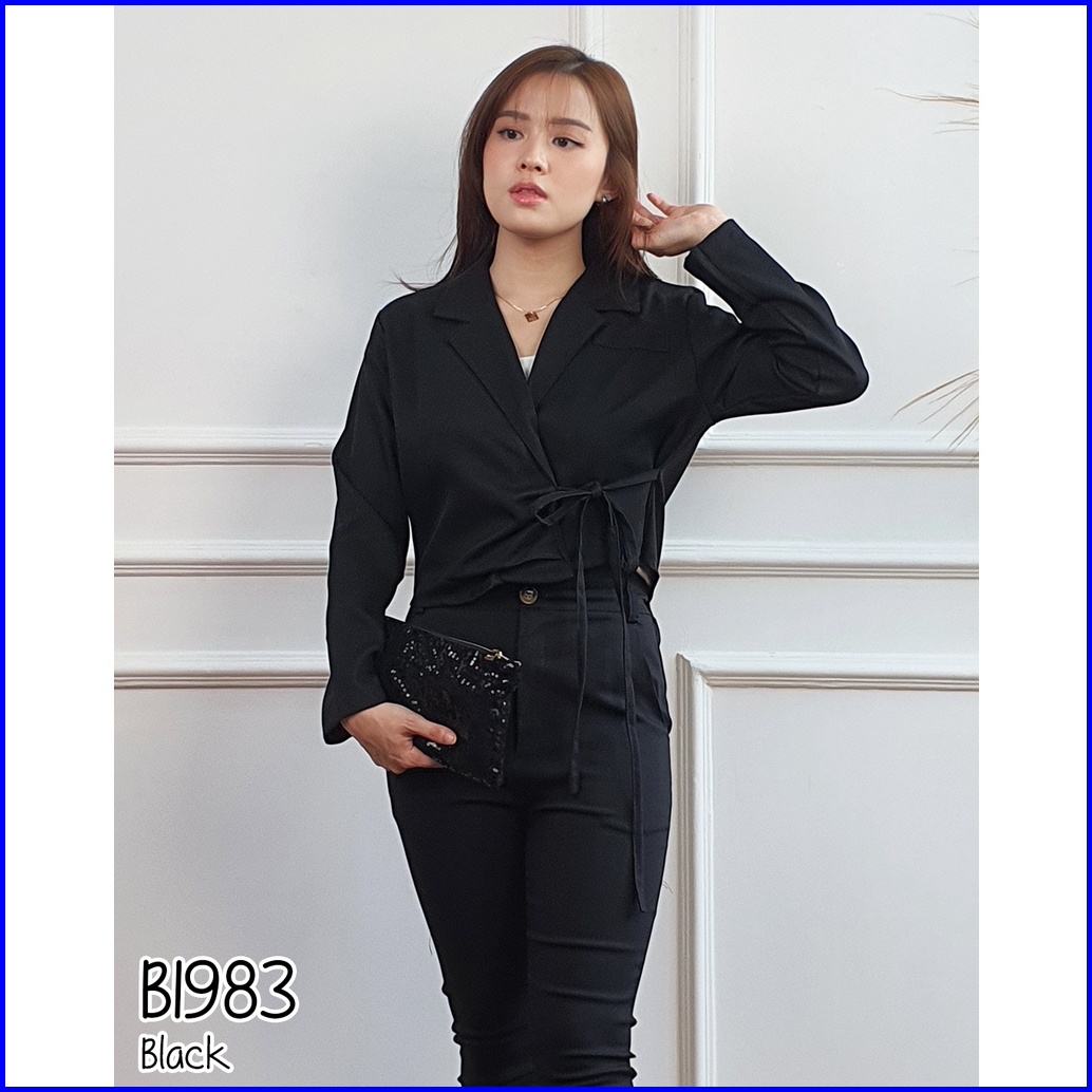 Missol Outer Wanita Model Kimono Crop Lengan Panjang Polos B1983