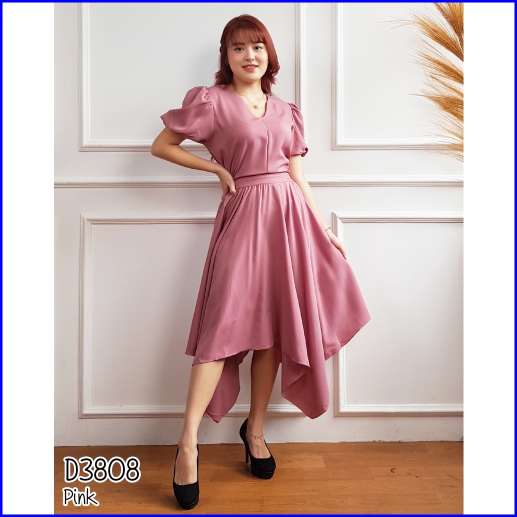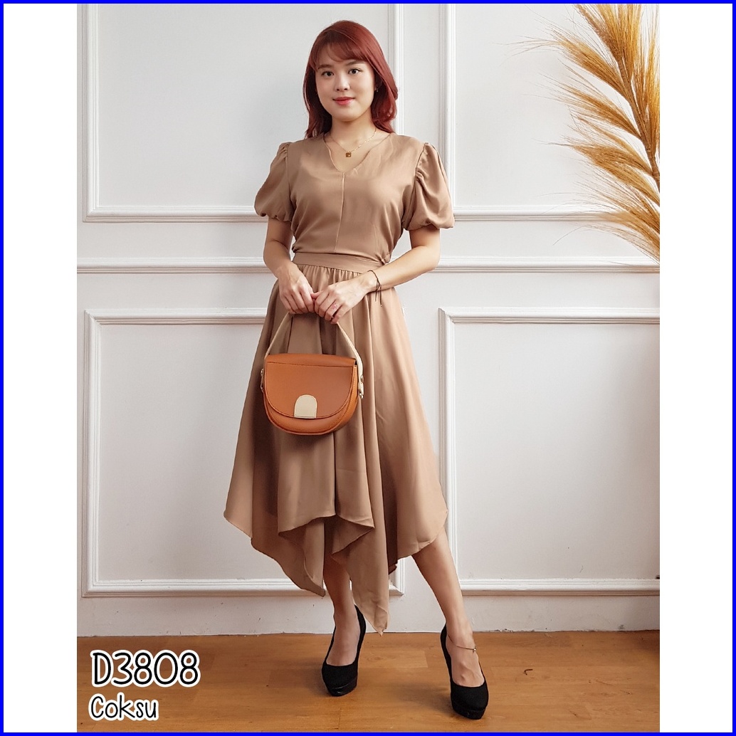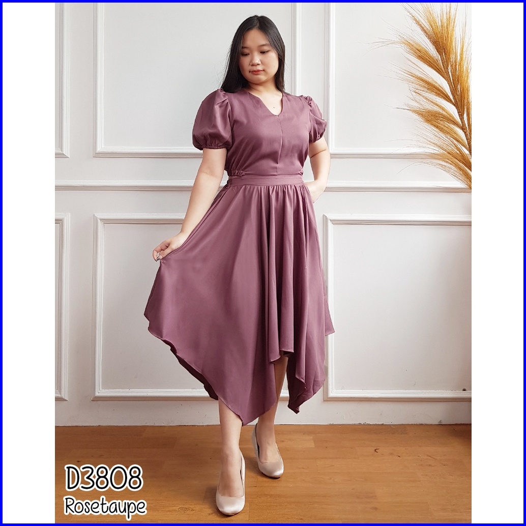 Missol Dress Wanita Flare Polos Asimetris Feminine Look D3808