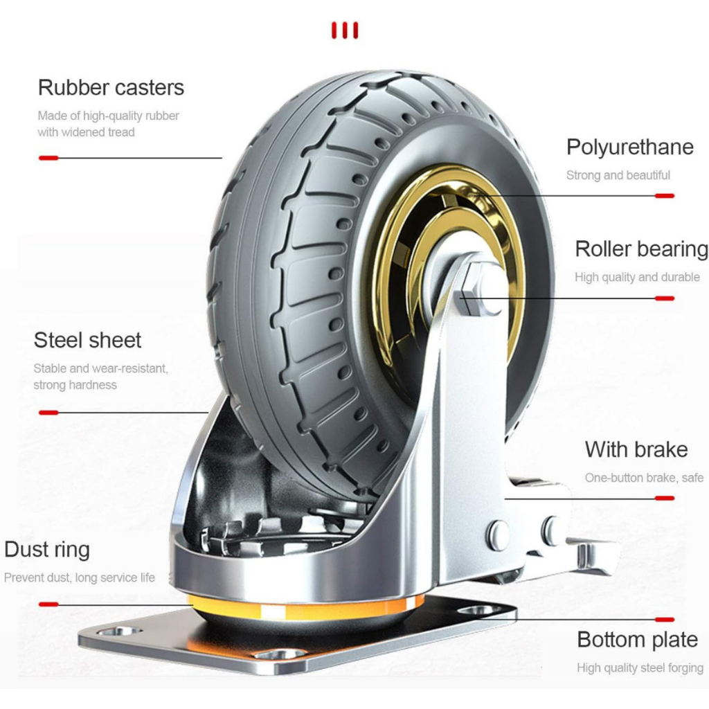 RODA TROLY ROLY RUBBER HITAM DOUBLE BEARING HEAVY DUTY 3 INCH 4 INCH 5 INCH