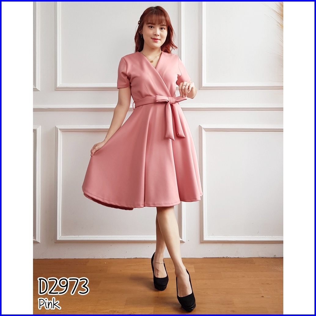 Missol Dress Lebar Midi Polos Lengan Pendek Bisa Untuk Busui Dress Presenter Tvone D2973 2973