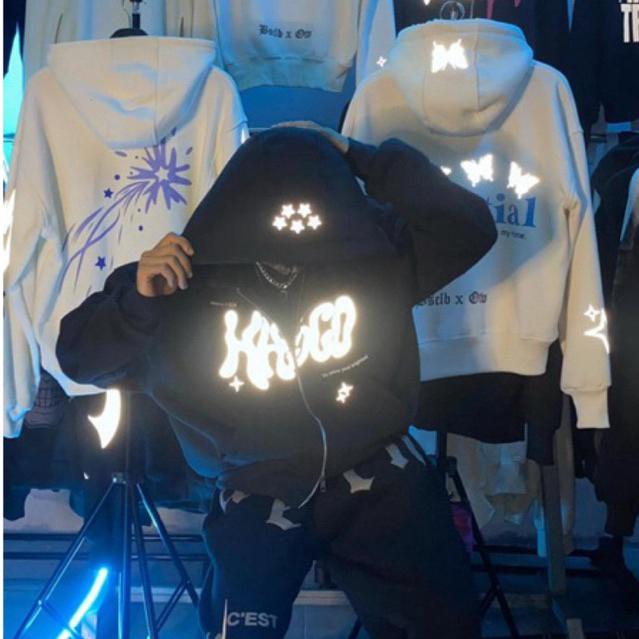 ( PROMO )HHSCO - Hoodie Pria Zipper Boxy Abstrack Hitam Reflektif Origina