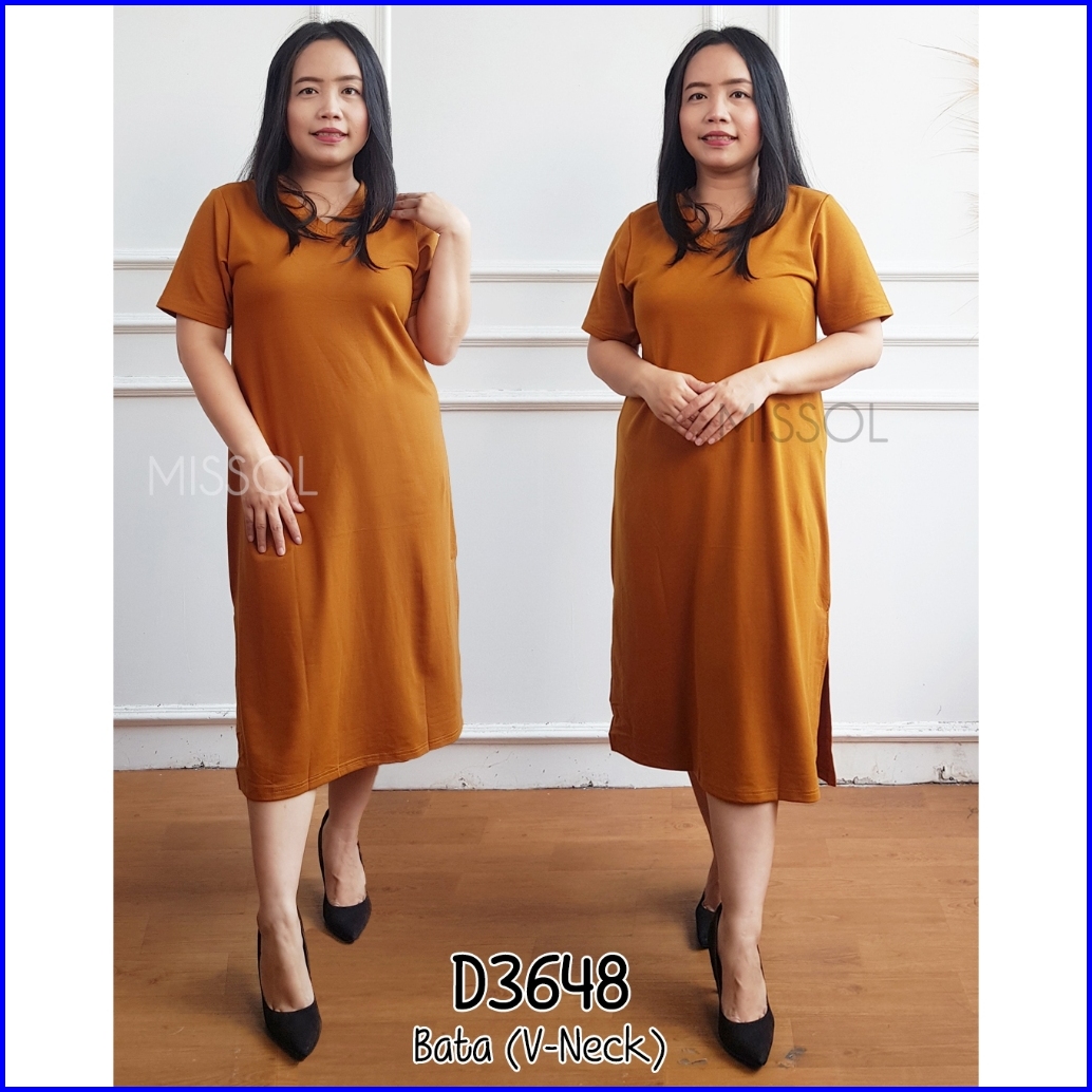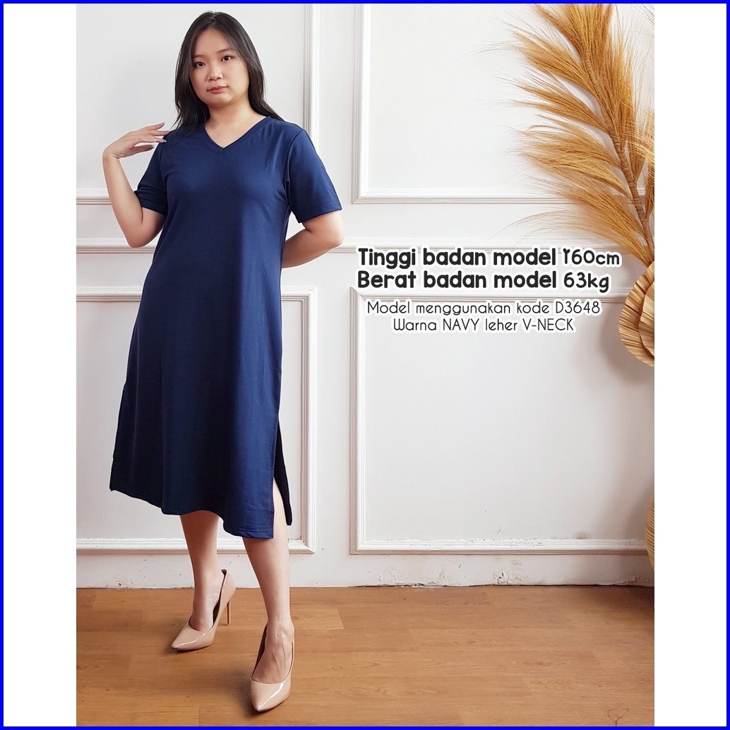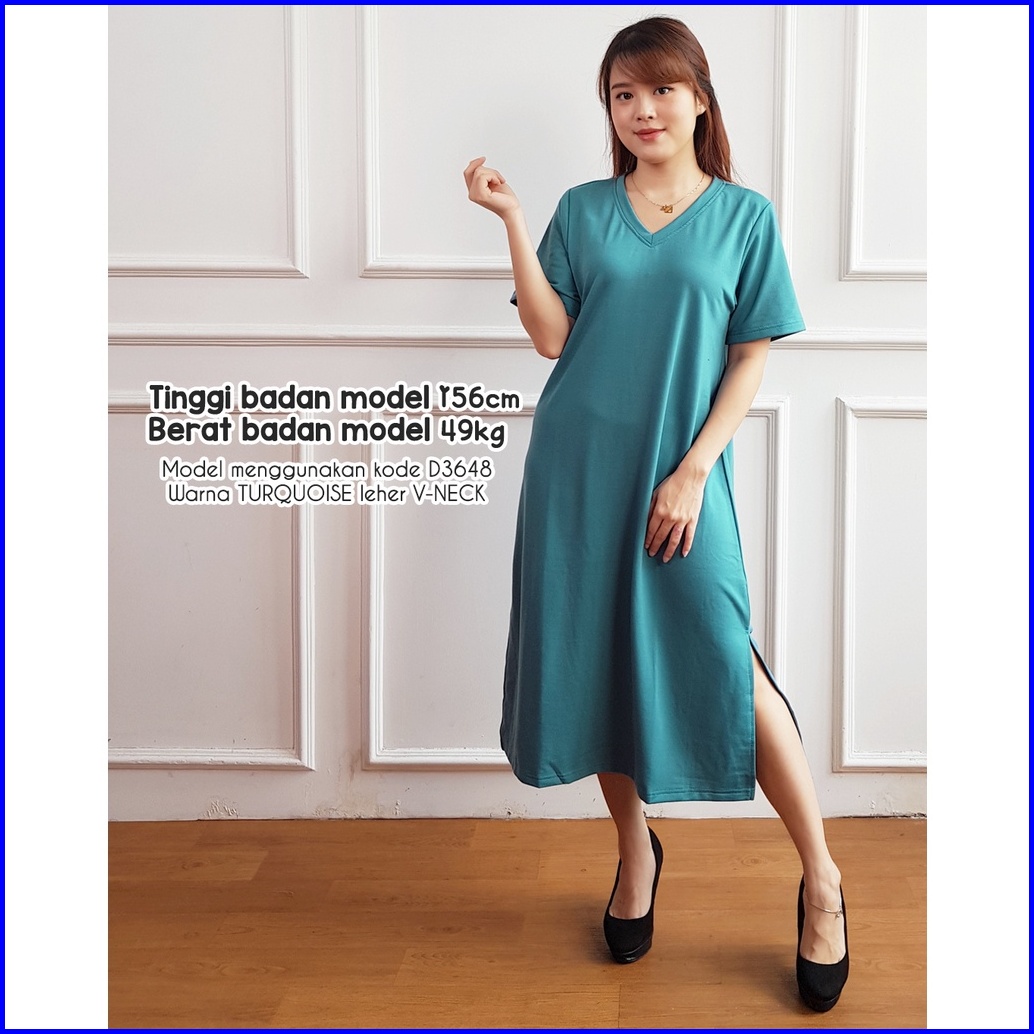 Dress Casual Wanita Polos D3648 Loose Slit Dress 3648 Sport Casual Style