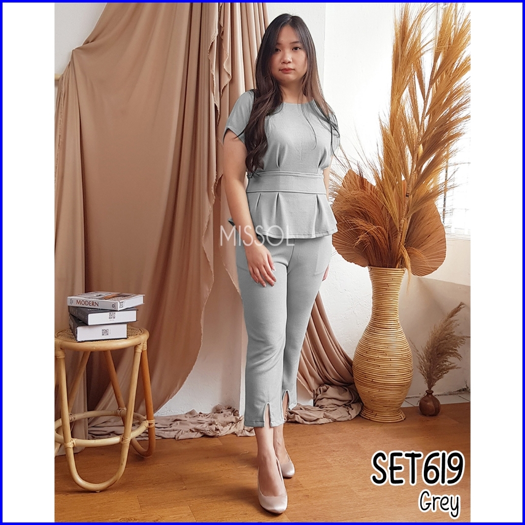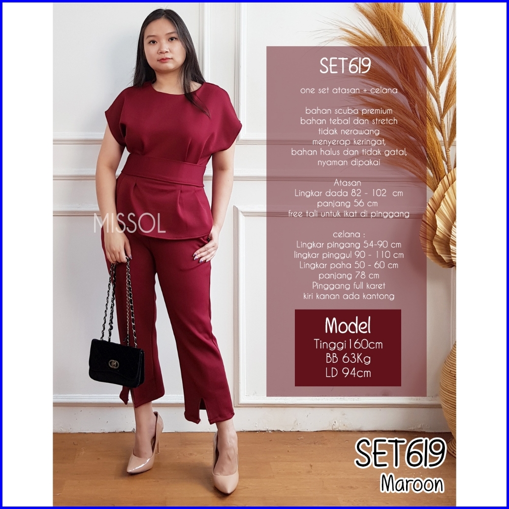 Missol One Set Wanita Casual Bahan Scuba Free Obi Belt 619 Set619 Tv One