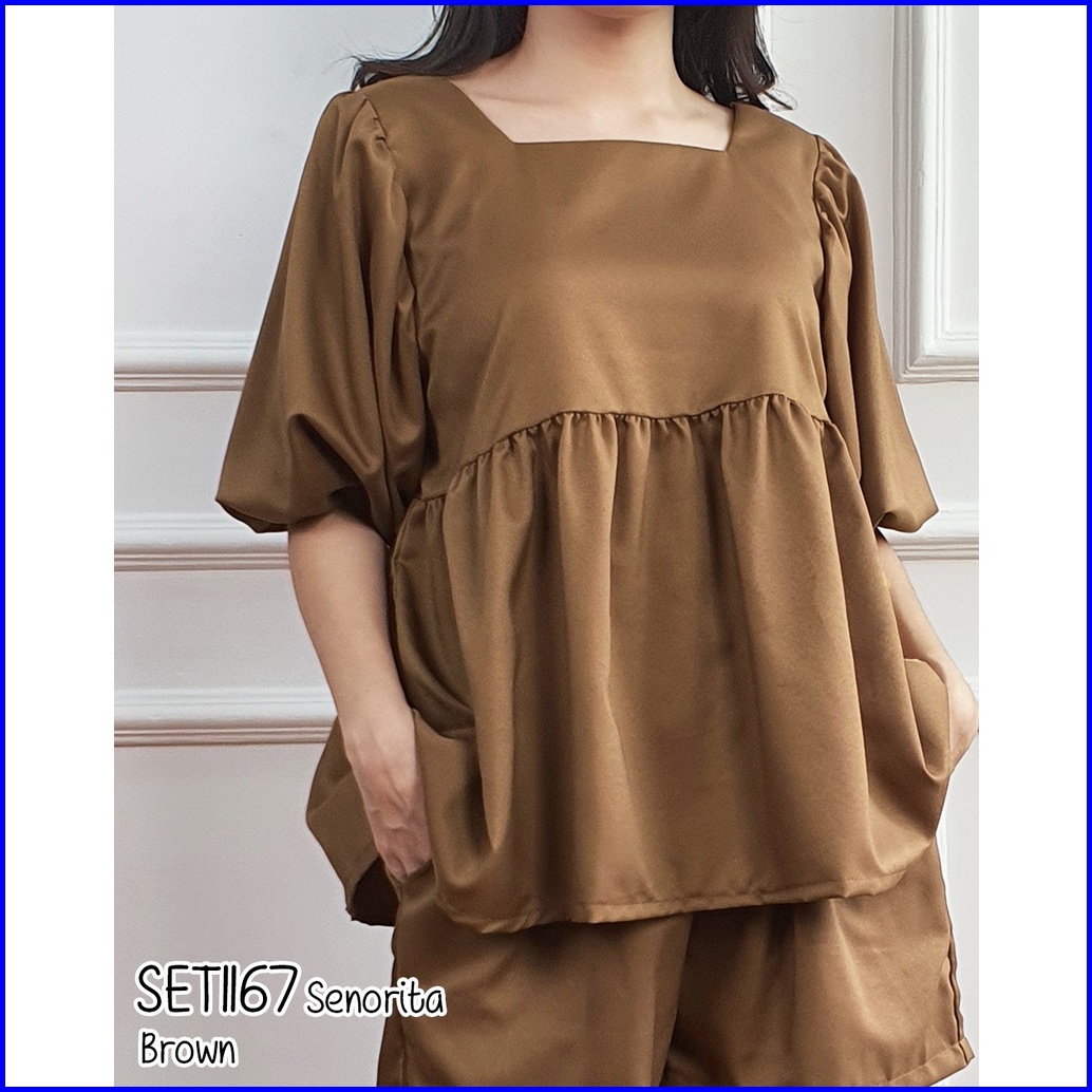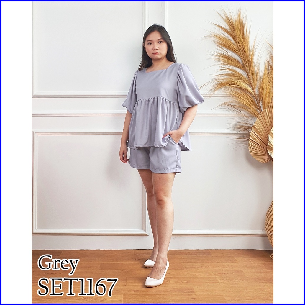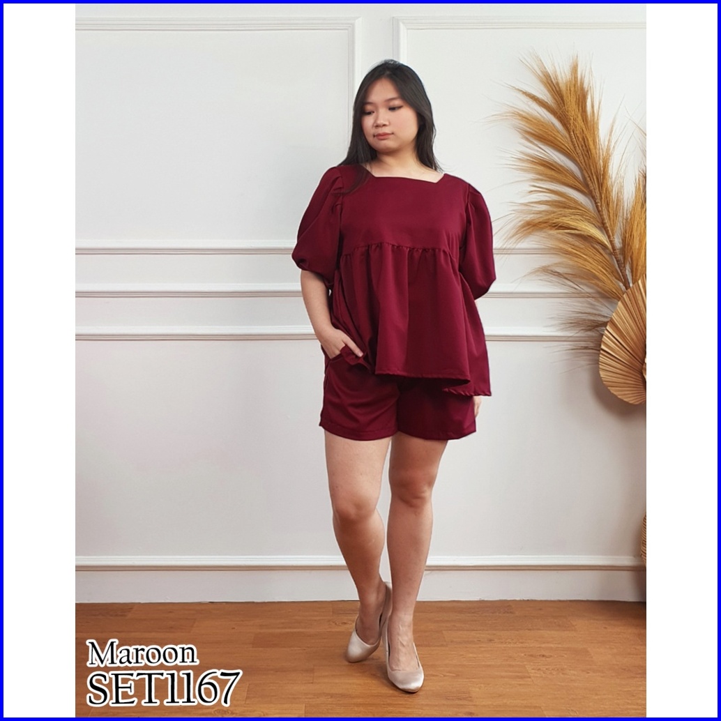 Missol Setelan Wanita Polos Celana Pendek Blouse Lengan Pendek Set1167