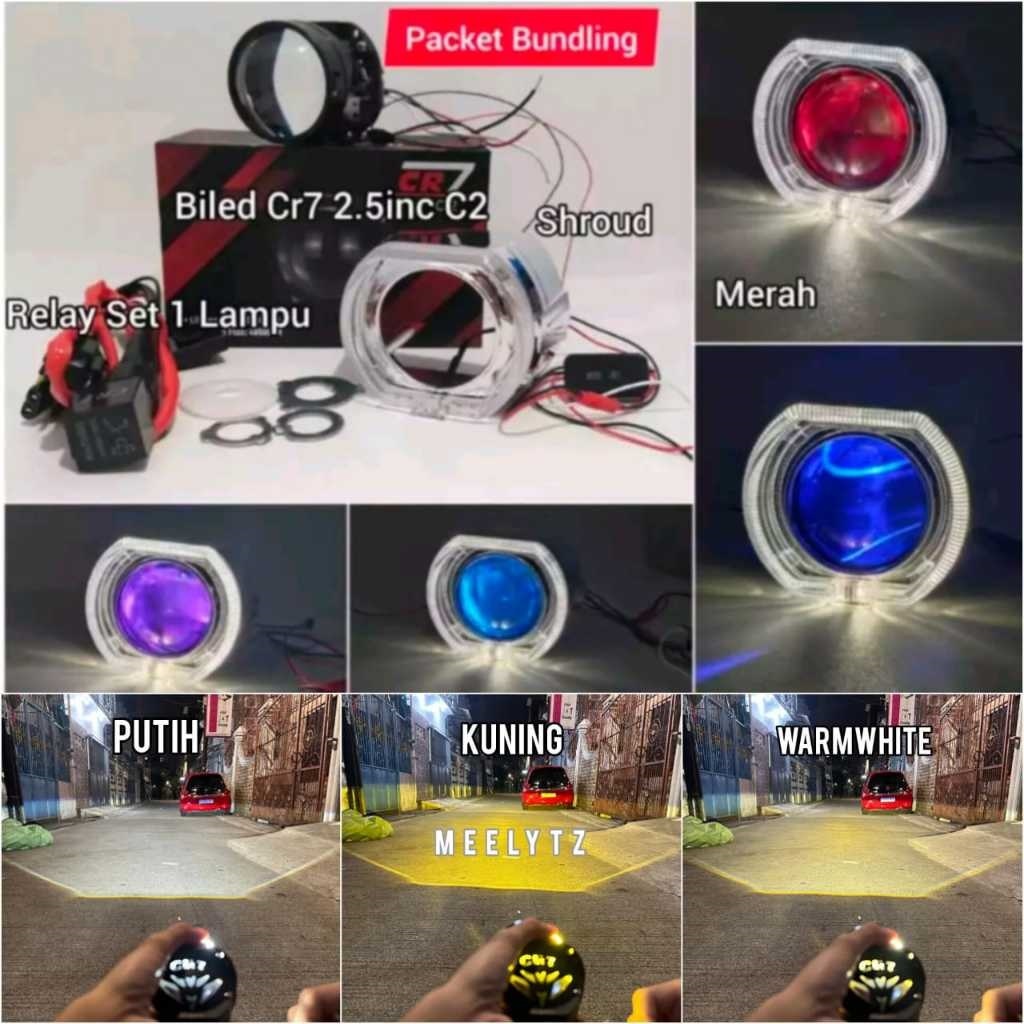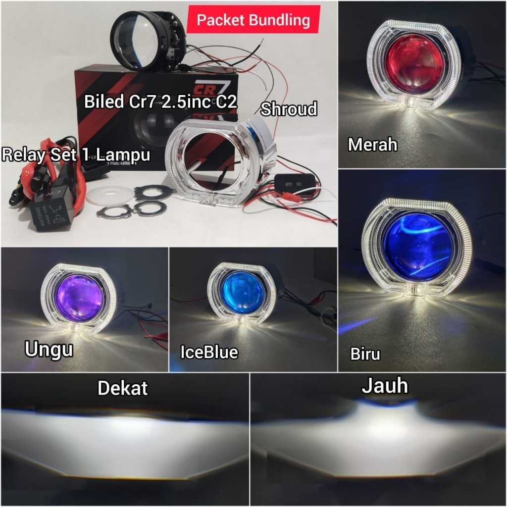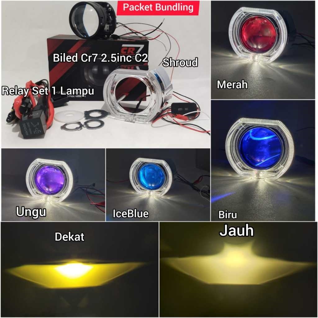 PAKET BUNDLING BILED CR7 C2 GEN2 ATAU CR7 HC013 ORIGINAL BLUE LENS 2,5INC FULL ALUMINIUM WATERPROOF HIGH LOW FLAT CUT ORIGINAL MURAH BY CR7