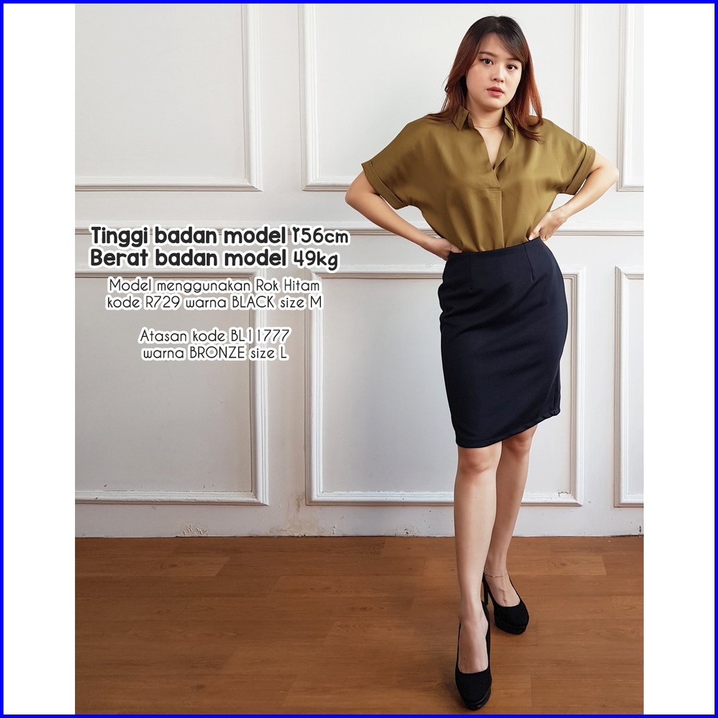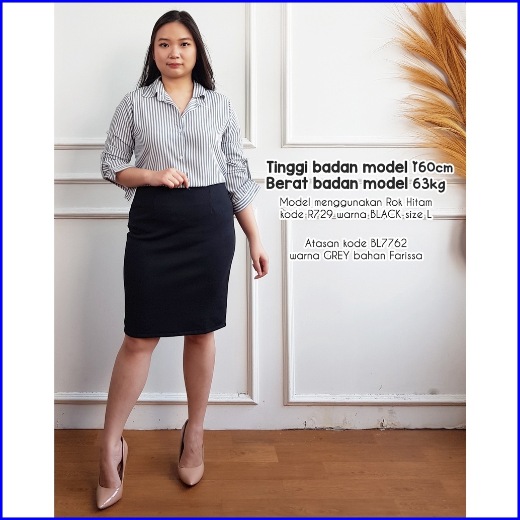 R729 Office Skirt Polos Hitam Rok Kerja Midi
