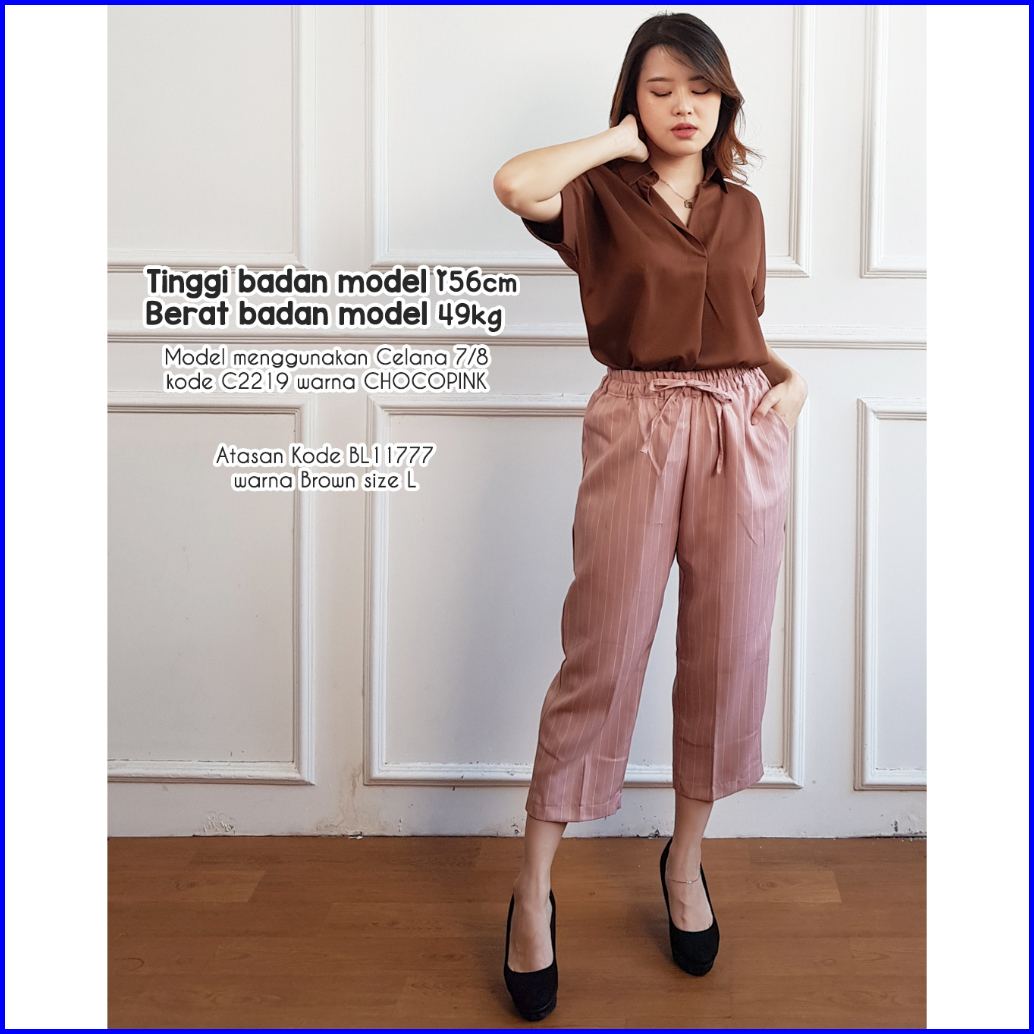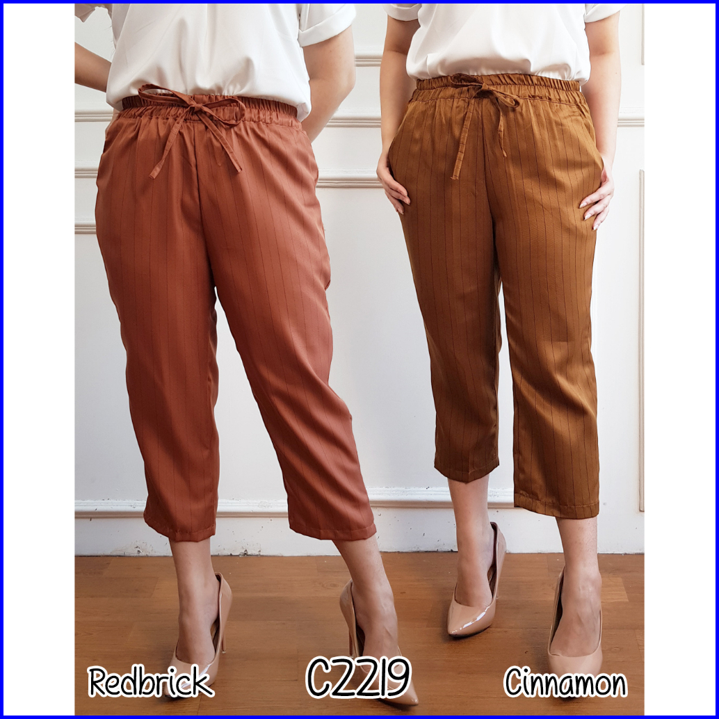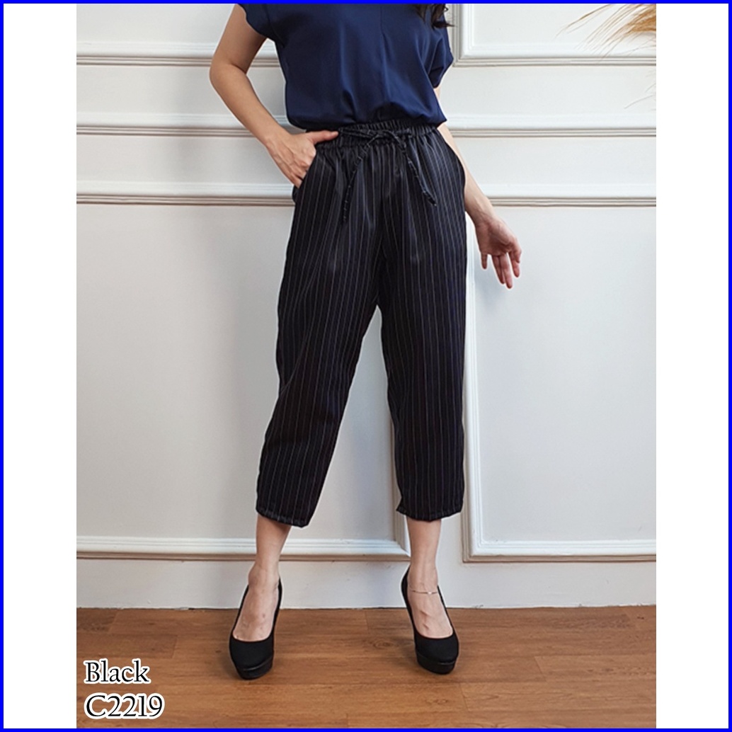C2219 Celana Stripe 7 8 Celana Kantoran Casual Style 2219