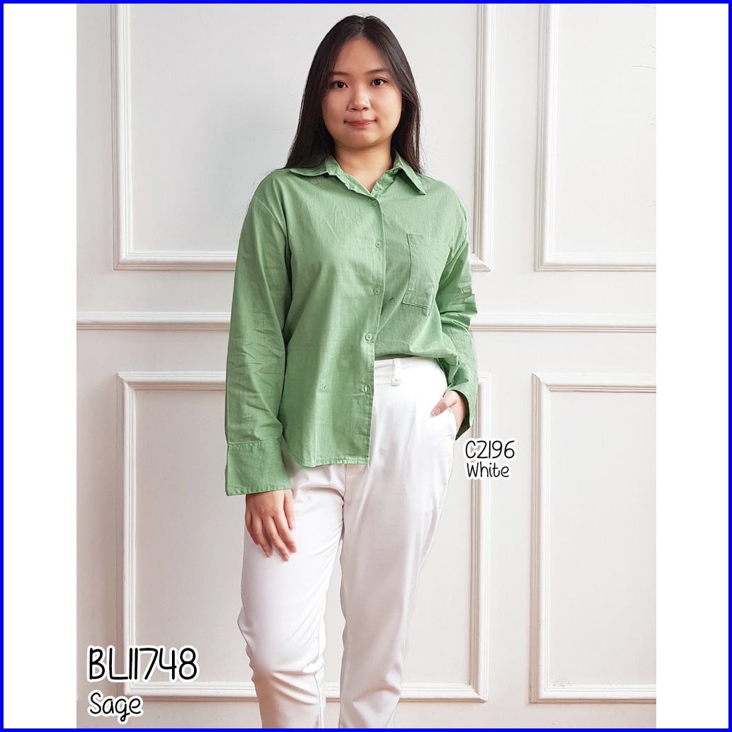 Missol Atasan Wanita Kemeja Kerja Polos Lengan Panjang Adem Dan Nyaman Bl11748 11748