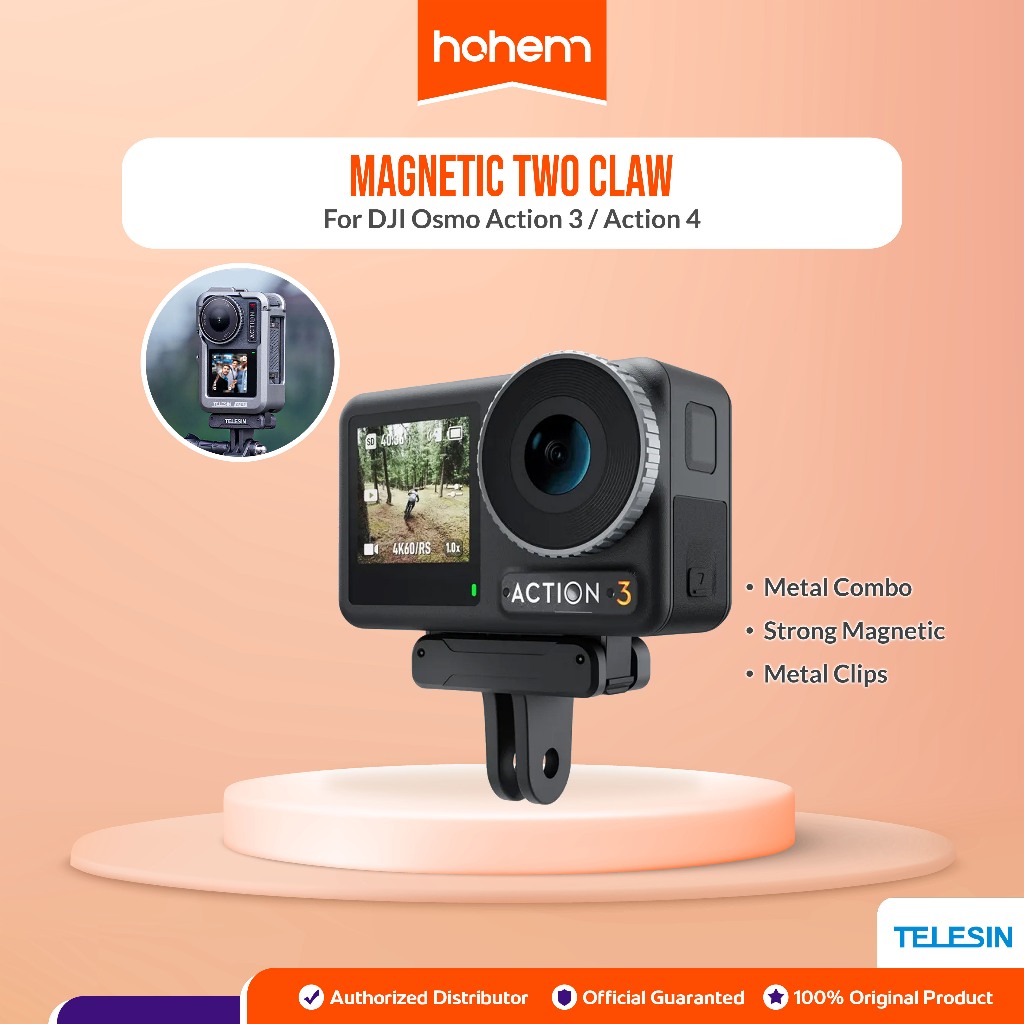 TELESIN Magnetic Adapter Two Claw Mount For DJI Osmo Action 3 / Action 4 Quick Release Cam Camera Kamera Adaptor Magnet