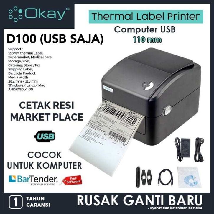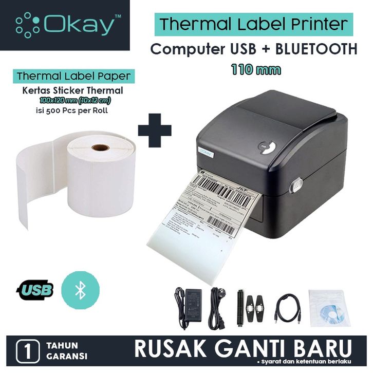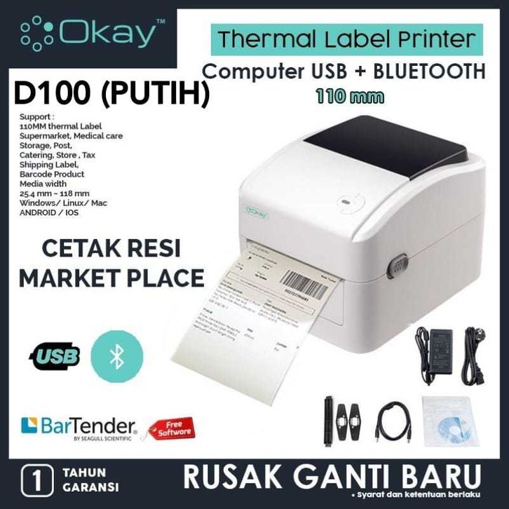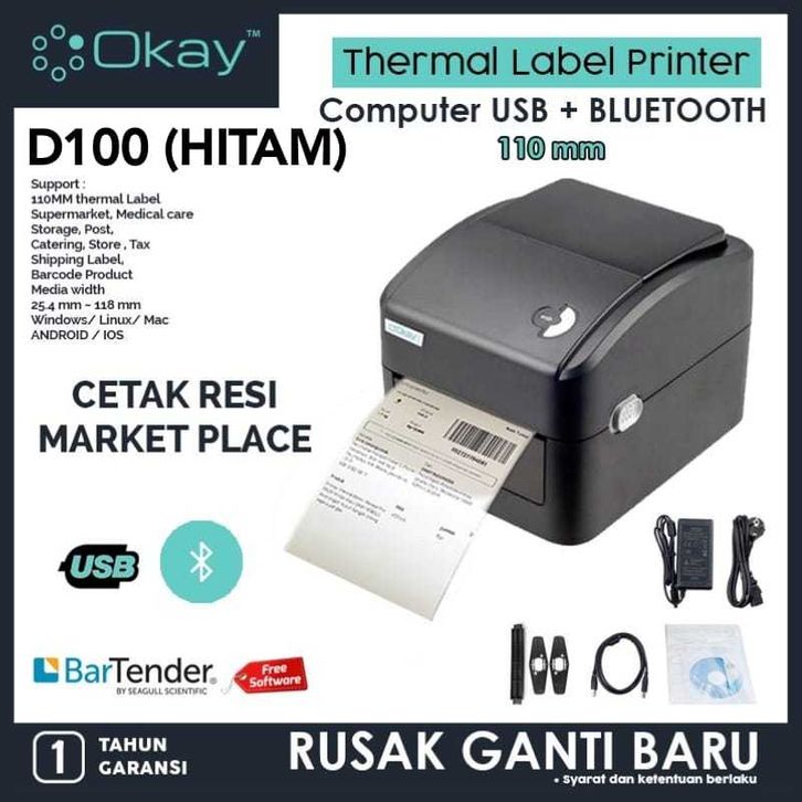 OKAY D100 BW BL Printer label pengiriman barcode thermal Max Sticker A6 110mm Printer Resi