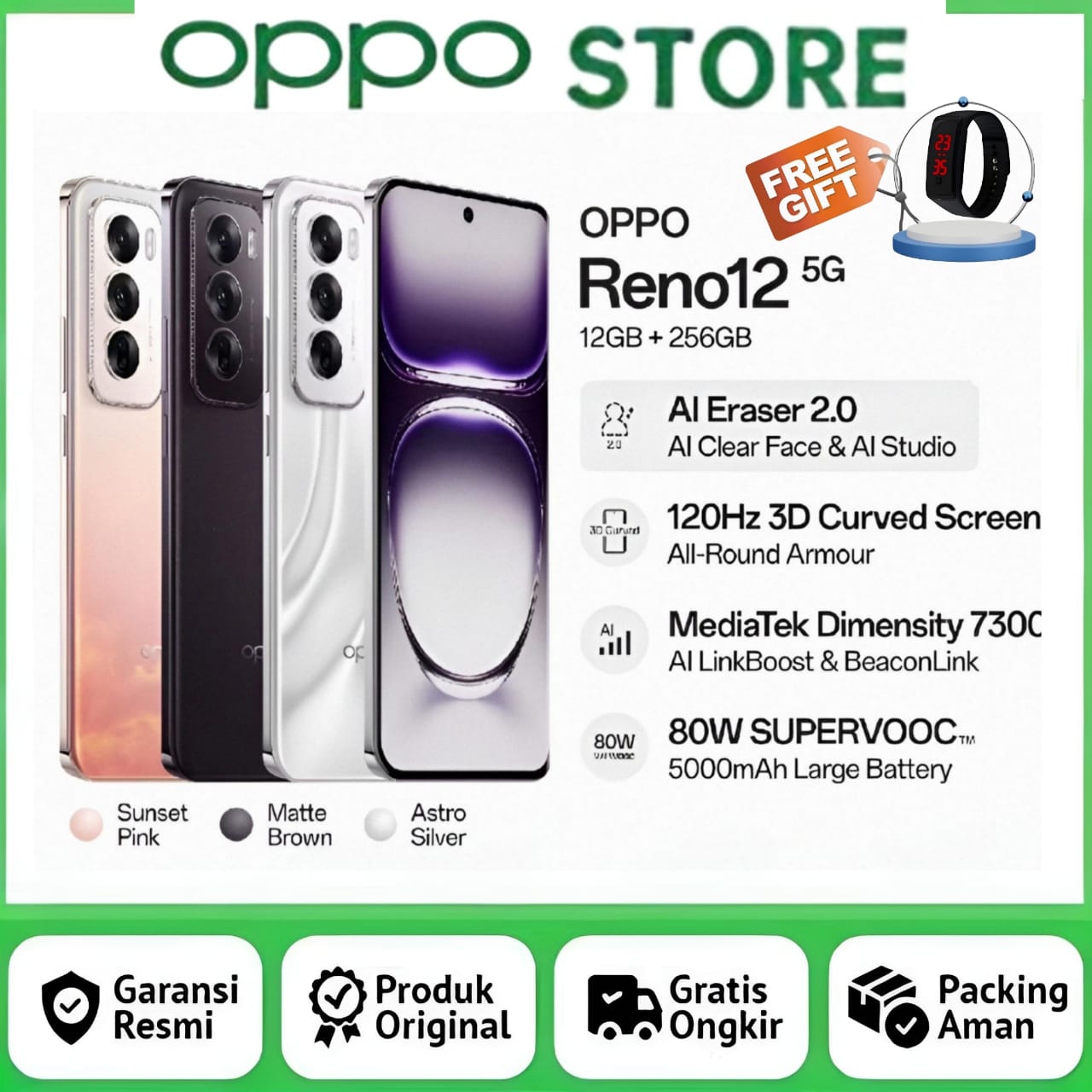Oppo Reno 12 5G 12/256GB Garansi Resmi Oppo Reno 10 5G Oppo Reno 12F Oppo Reno 12 Reno 12 Reno 12F Reno 12 5G Reno 13F