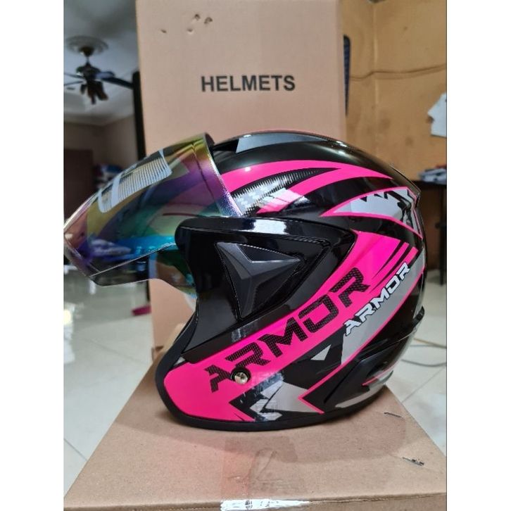 HELM HALF FACE DEWASA, GHM VISTA ARMOR MOTIF CANTIK, SNI, BAHAM ABS ORIGINAL